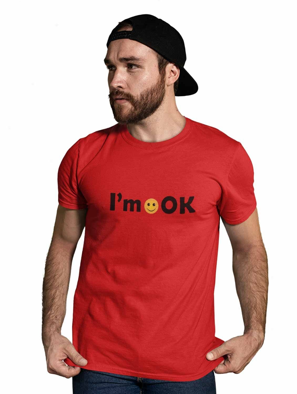 I'm OK in Text T-shirt (Red) - Clothes for Emoji Lovers - Foremost Gifting Material for Your Friends and Close Ones