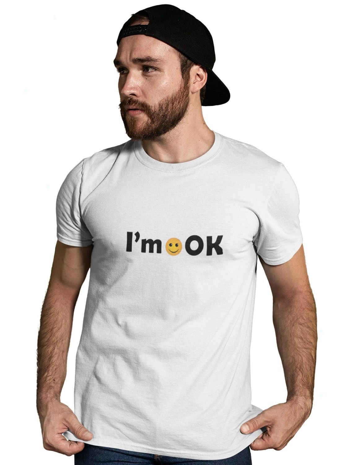 I'm OK in Text T-shirt (White) - Clothes for Emoji Lovers -Foremost Gifting Material for Your Friends and Close Ones
