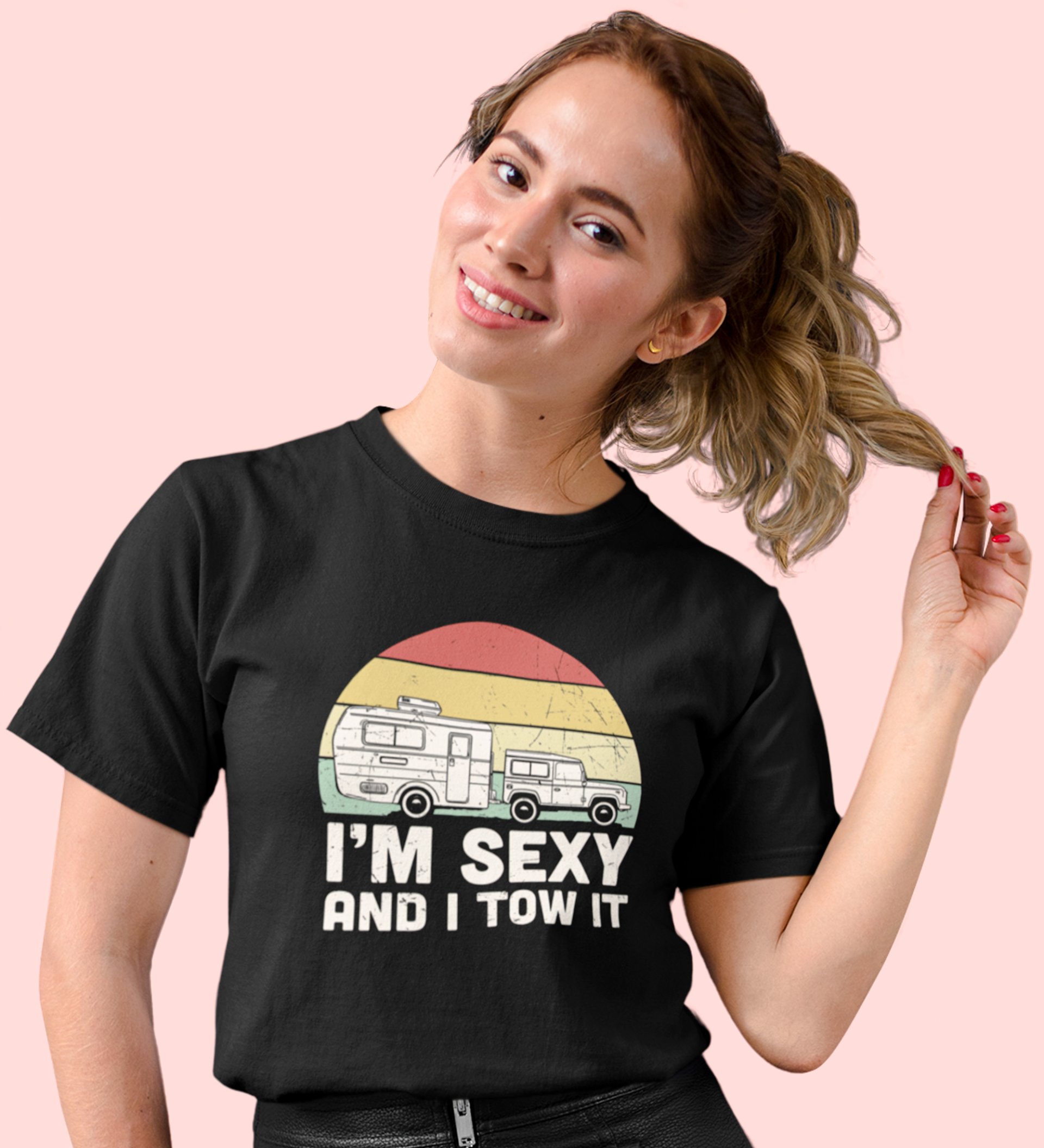 HopOfferI Tow It Black Round Neck Cotton Half Sleeved Women's T-Shirt with Printed Graphics