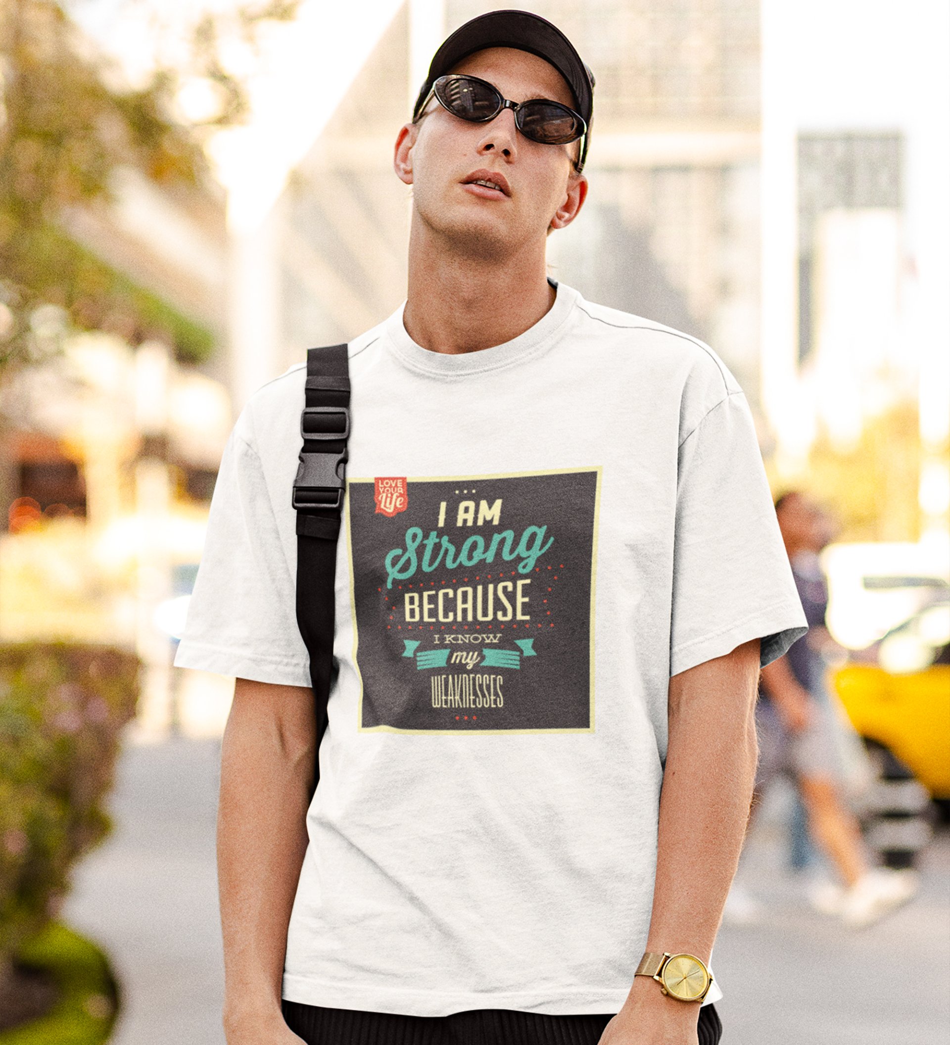 My Weakness White Round Neck Cotton Half Sleeved Men's T-Shirt with Printed Graphics
