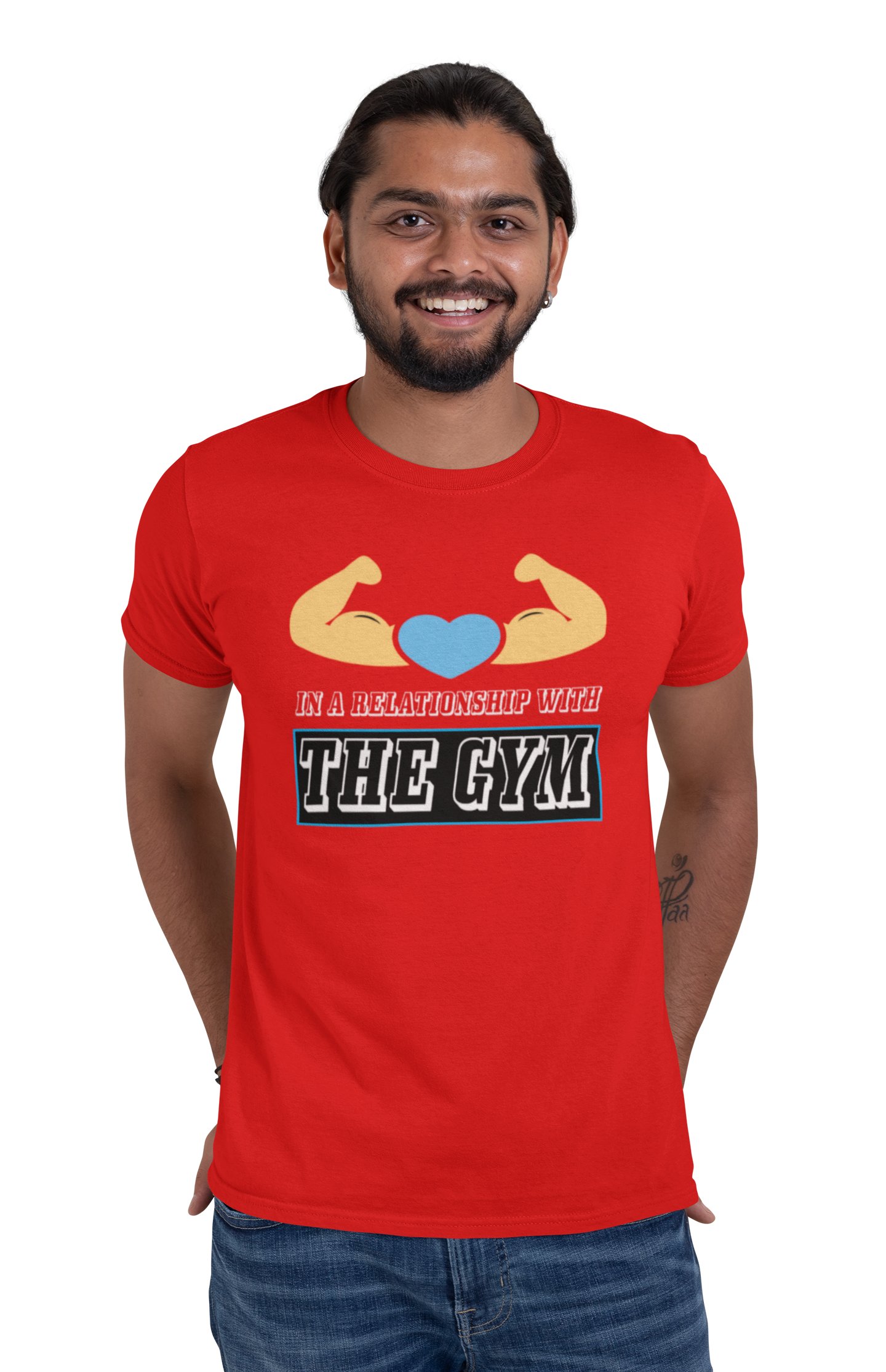 In A Relationship With The Gym, Round Neck Gym Tshirt (Red Tshirt) - Clothes for Gym Lovers - Foremost Gifting Material for Your Friends and Close Ones