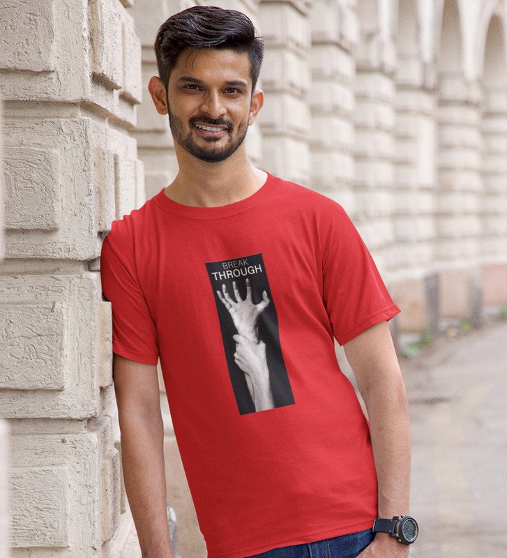 Innovation, Red Street Swagger: Men's Oversized Tee featuring Front Print Detail