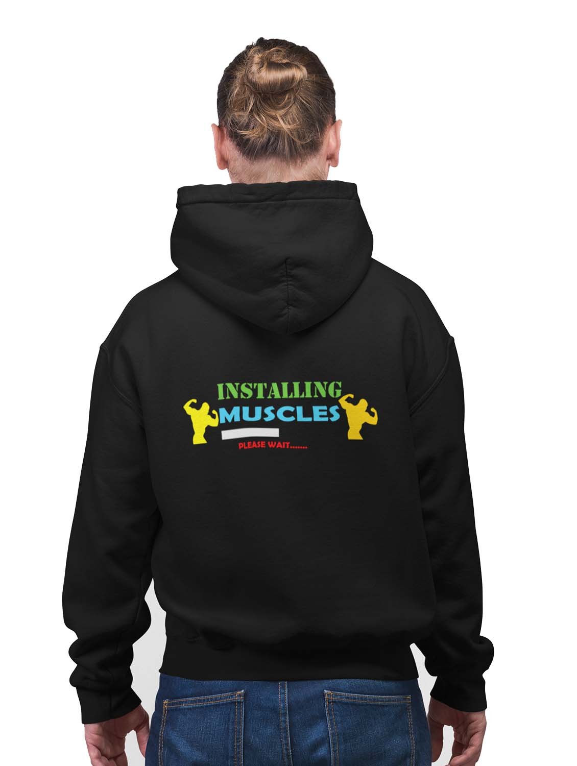 Installing Muscles (BG Green & Blue Text ) printed artswear black hoodies for winter casual wear specially for Men