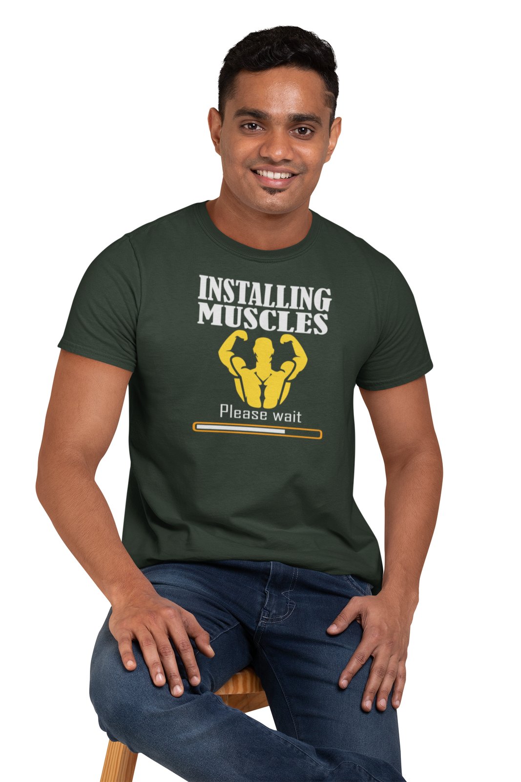 Installing Muscles loading, Round Neck Gym Tshirt - Foremost Gifting Material for Your Friends and Close Ones