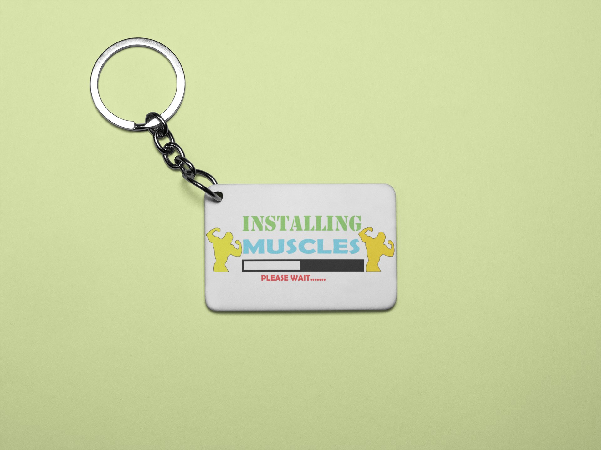 Installing Muscles, Please Wait, (BG Green Blue and Red) - Printed Keychains for gym lovers(Pack of 2)