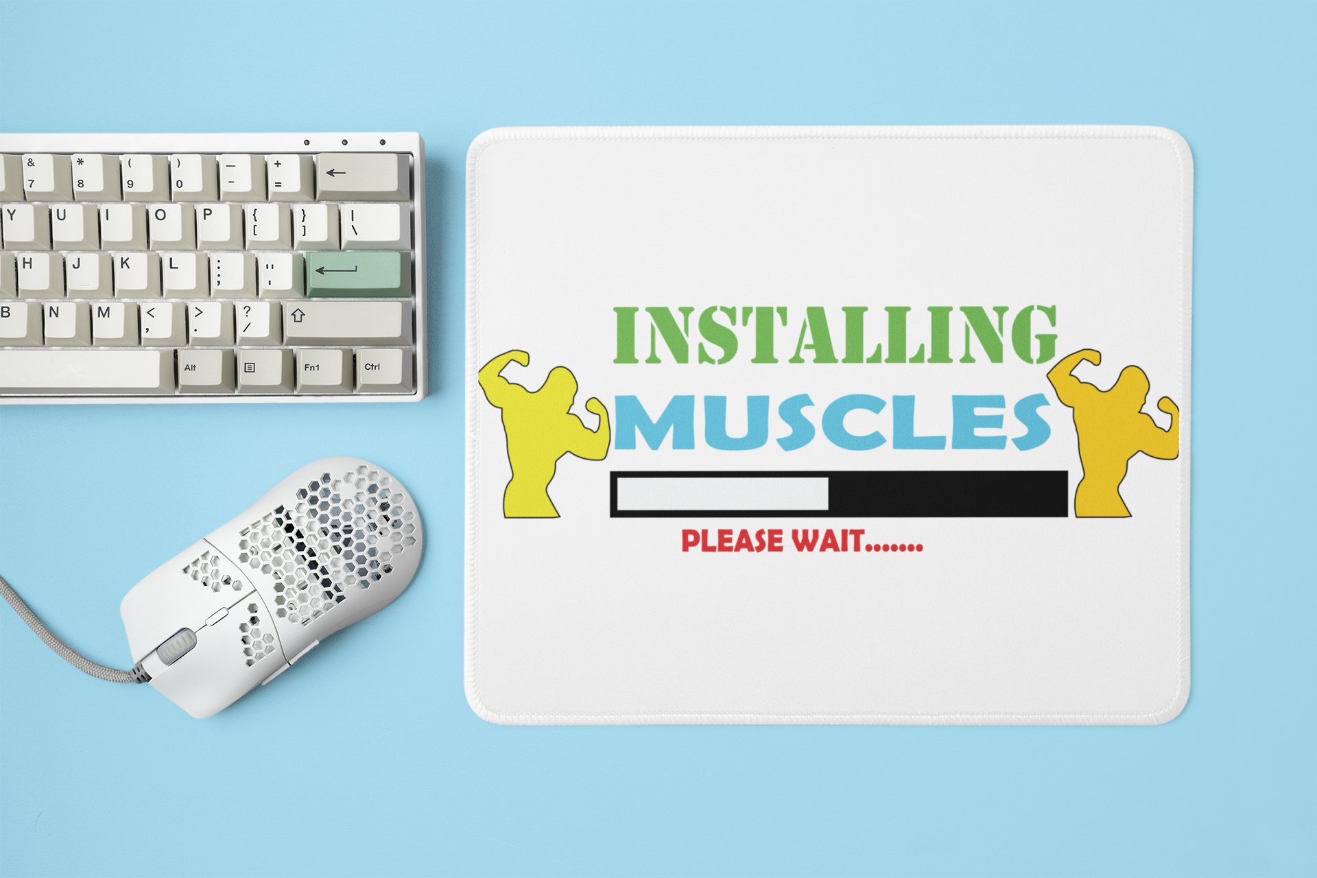 Installing Muscles, Please Wait, (BG Green Blue and Red) - Printed Mousepads For Gym Lovers