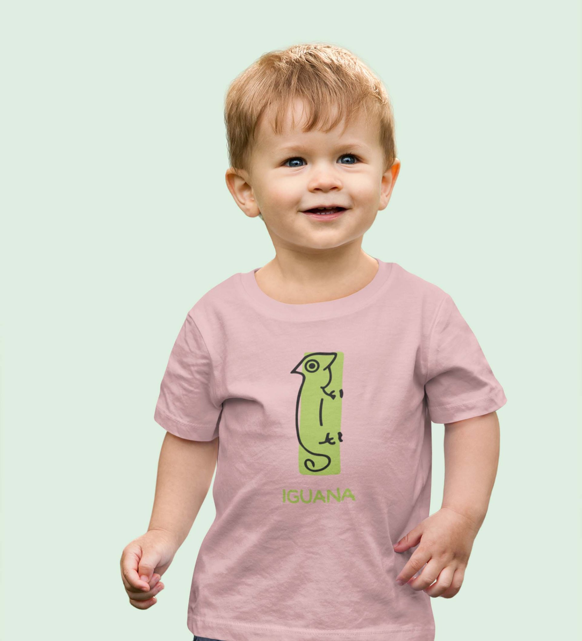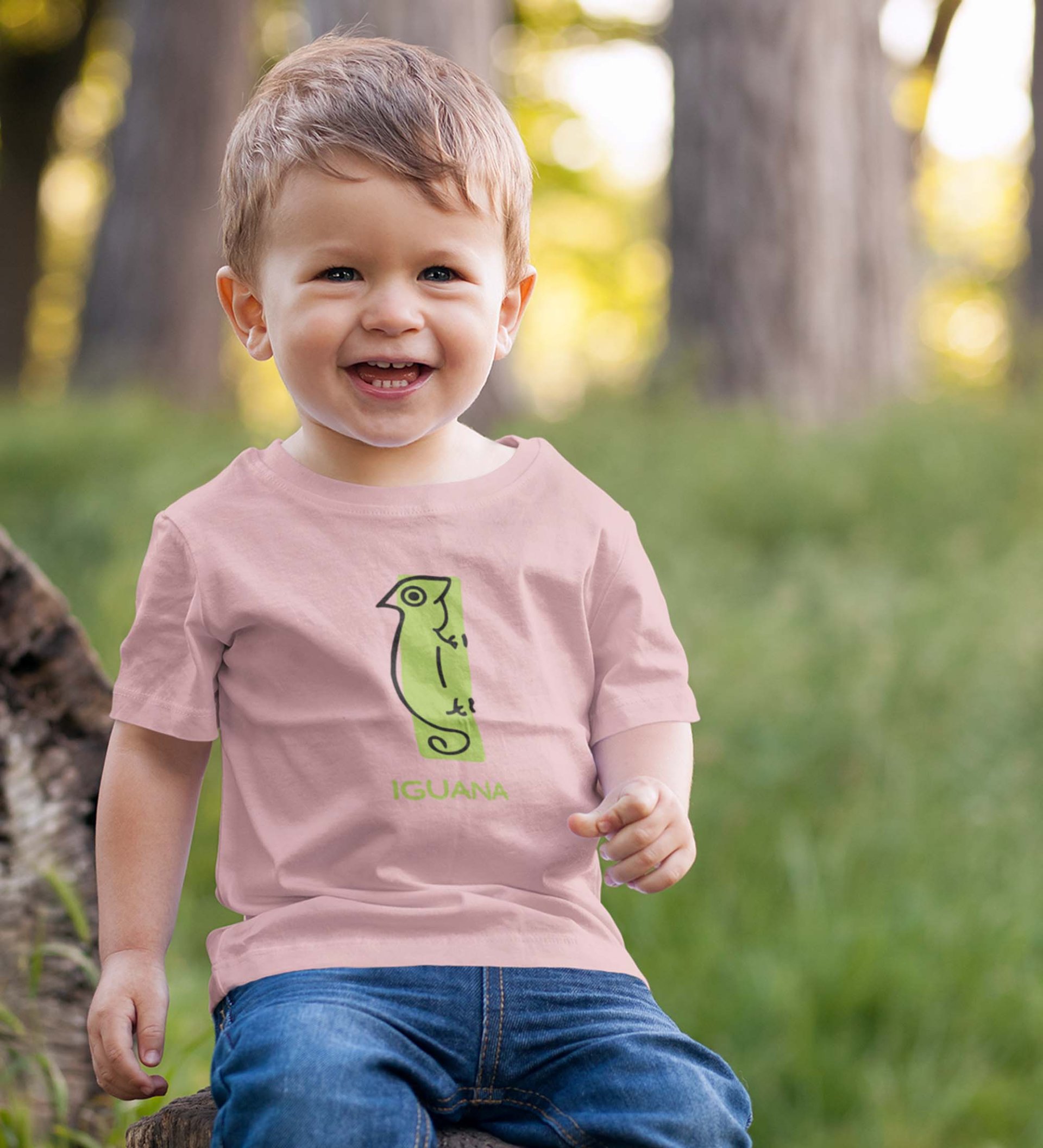 Intelligent Iguana, Boys Printed Crew Neck Tshirt (baby pink)