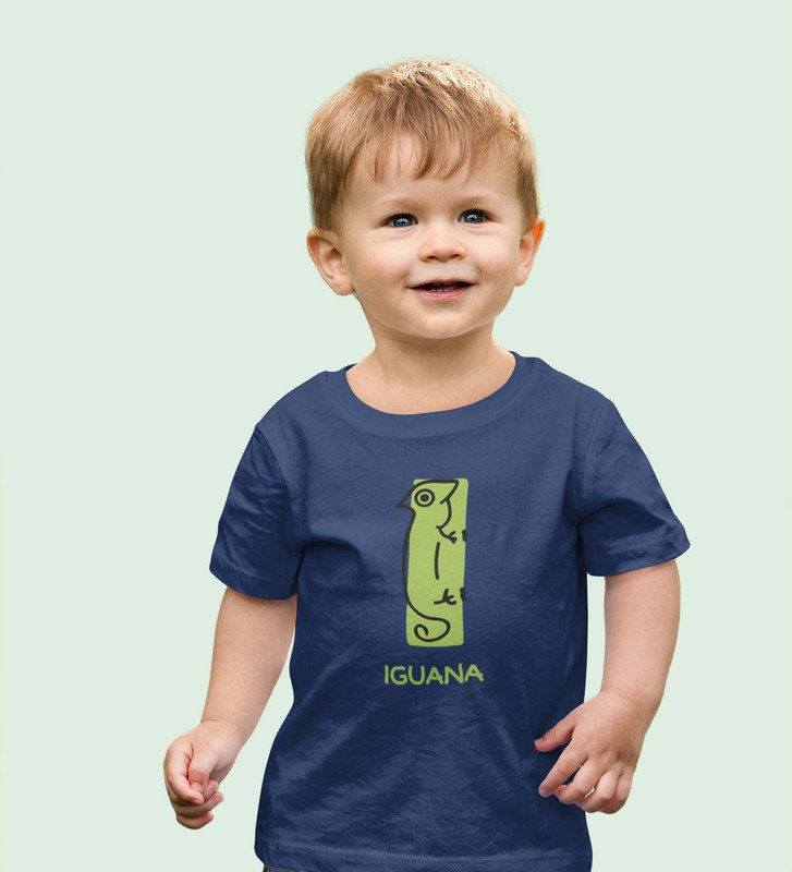 Intelligent Iguana, Boys Printed Crew Neck tshirt (Navy blue)