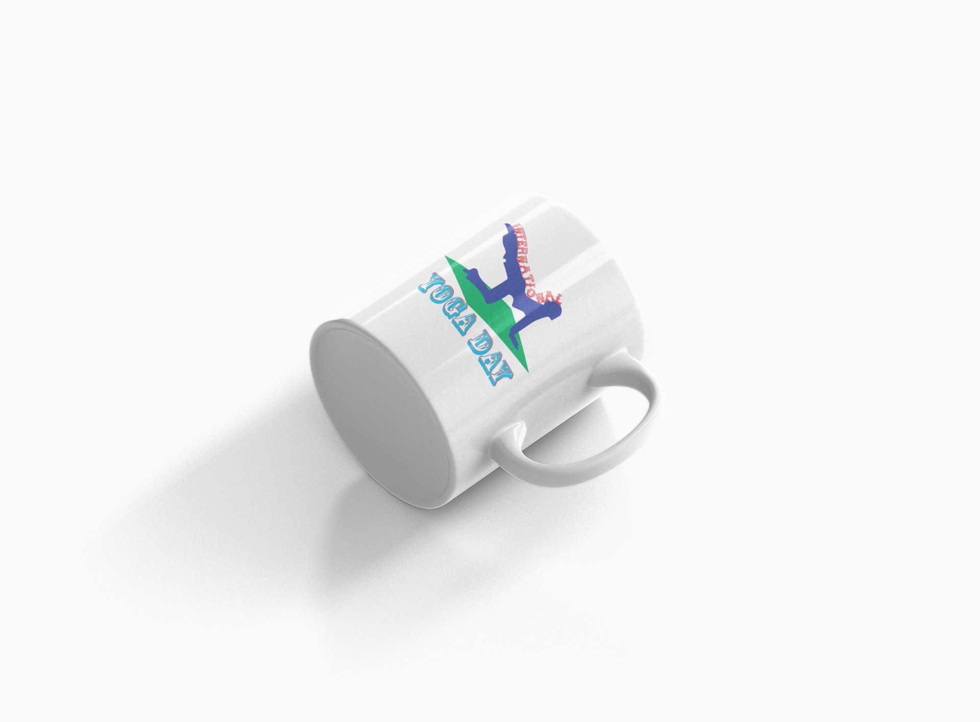 International Yoga Day Text In Red & Blue - Printed Coffee Mugs For Yoga Lovers