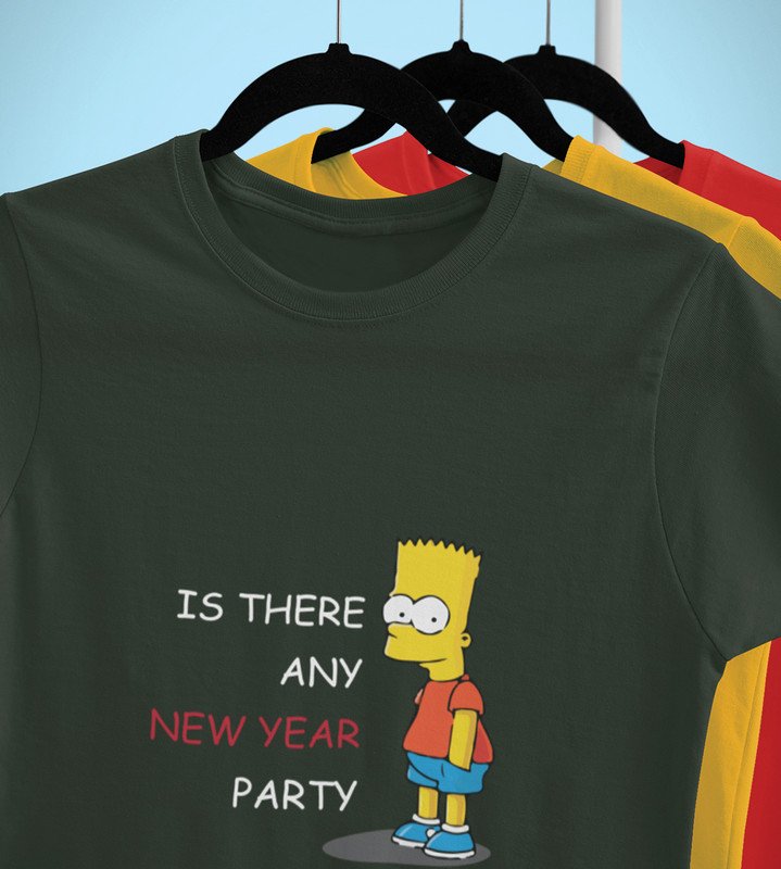 Is There Any Party? Green Printed T-shirt For Mens On New Year Theme Best Gift For New Year