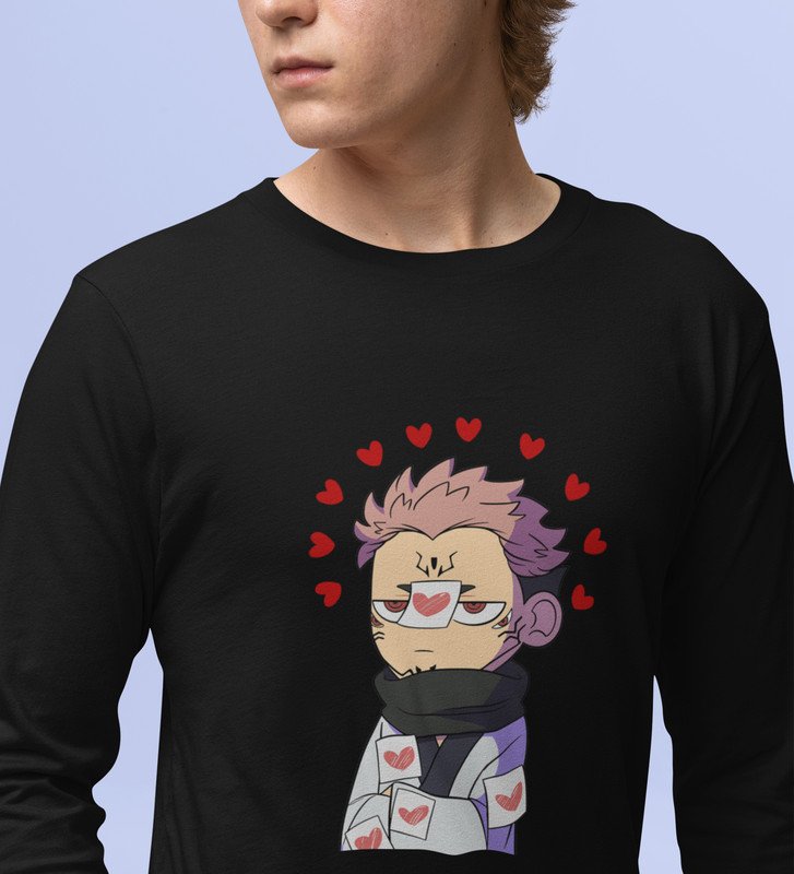 Itadori In Love Printed Cotton Black Full Sleeves Tshirt For Mens and Boys