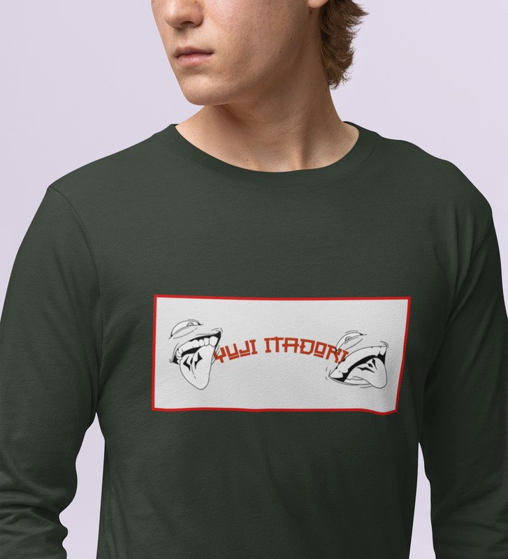 Itadori Two Faces, Printed Cotton Green Full Sleeves Tshirt For Mens and Boys