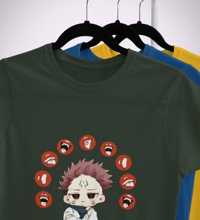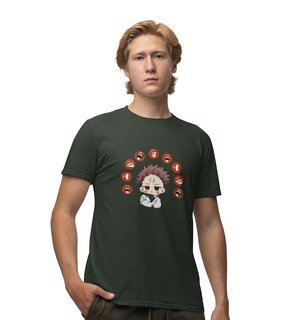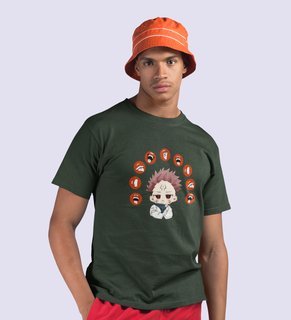 Itadori Two Faces, Printed Cotton Green Tshirt For Mens and Boys