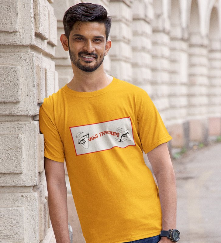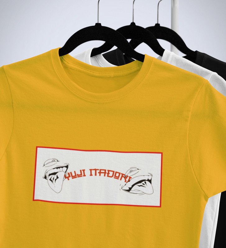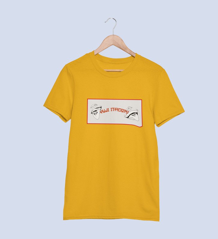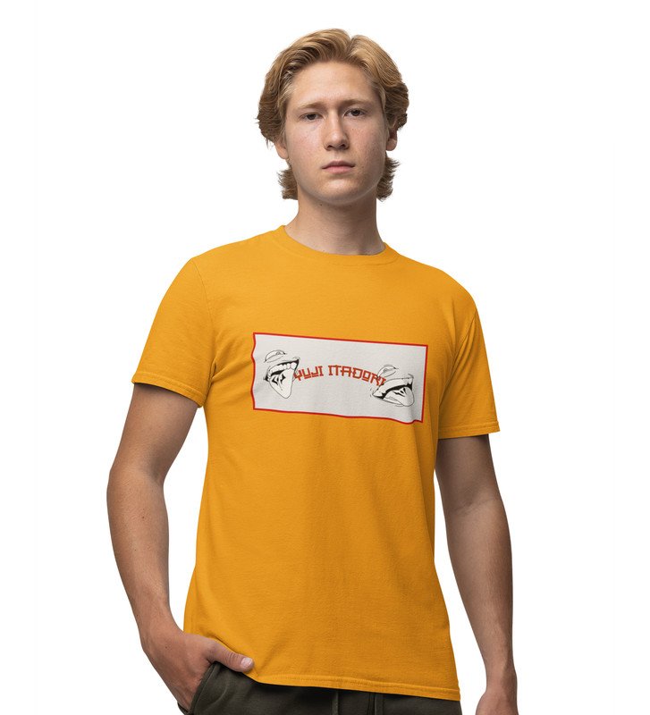 Itadori Two Faces, Printed Cotton Yellow Tshirt For Mens and Boys