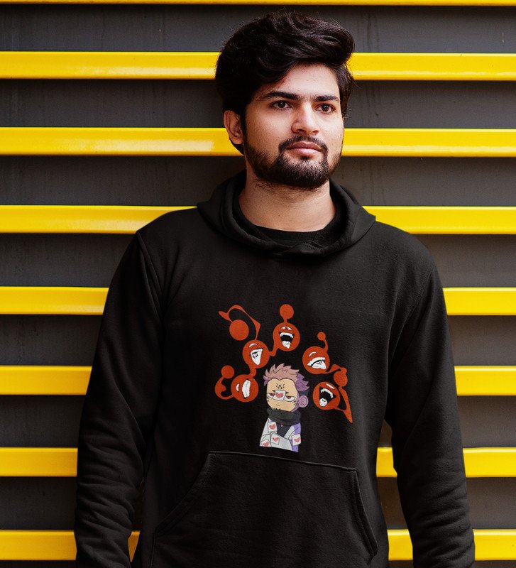 Itadori's Five Faces Cotton Black Hoodies For Mens and Boys