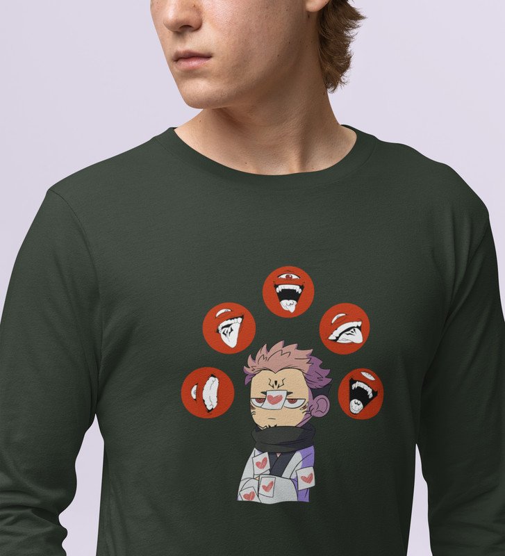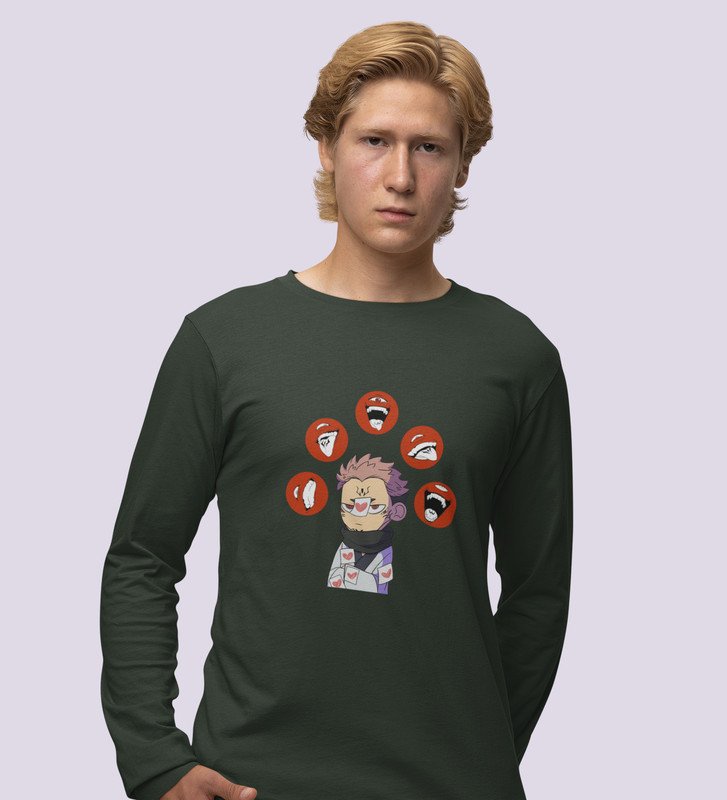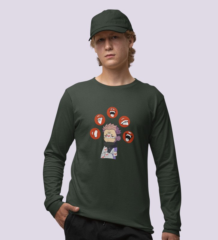 Itadori's Five Faces Cotton Green Full Sleeves Tshirt For Mens and Boys