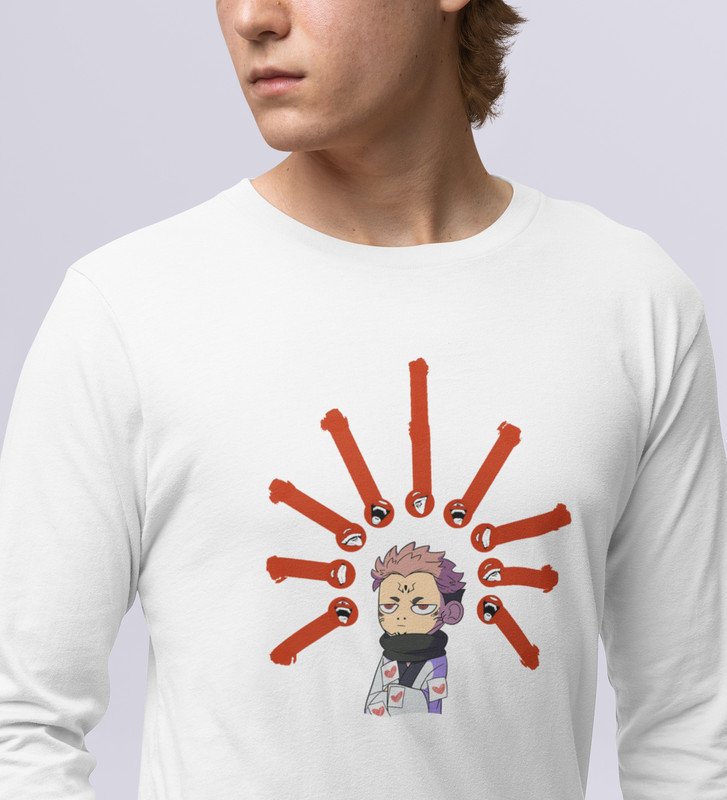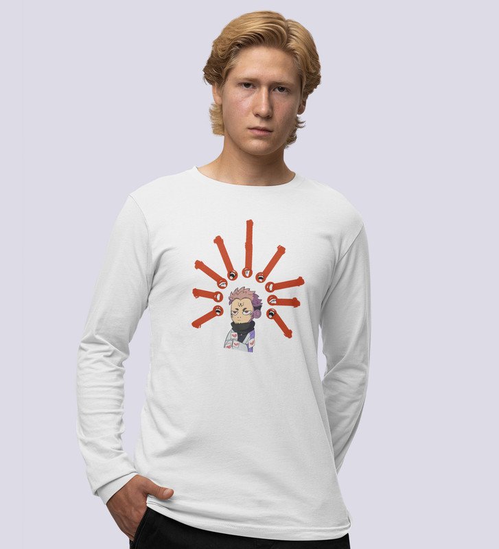 Itadori's Five Faces Cotton White Full Sleeves Tshirt For Mens and Boys