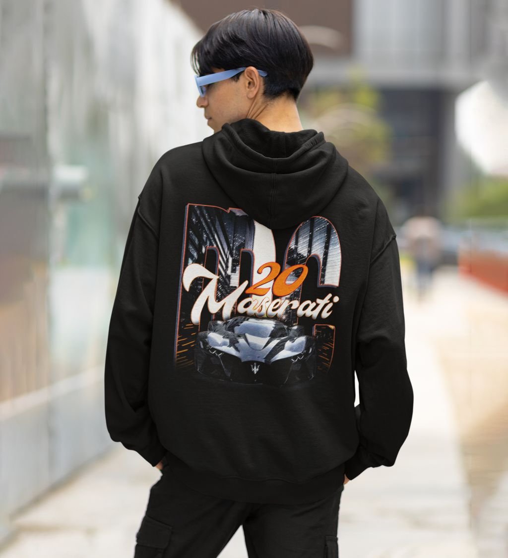 Italian Elegance Meets Raw Power Luxury Supercar Printed Black Hoodie for Men