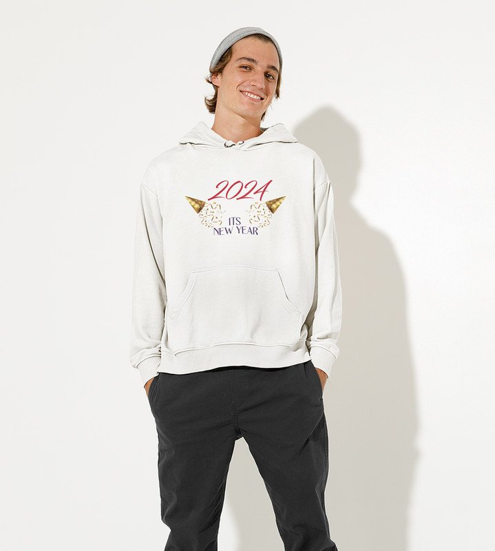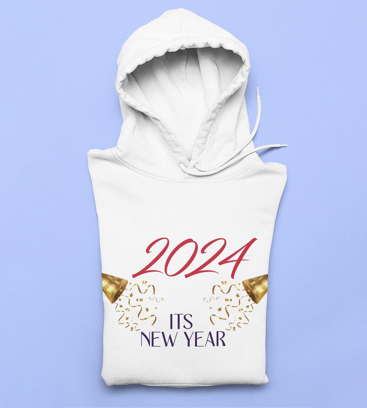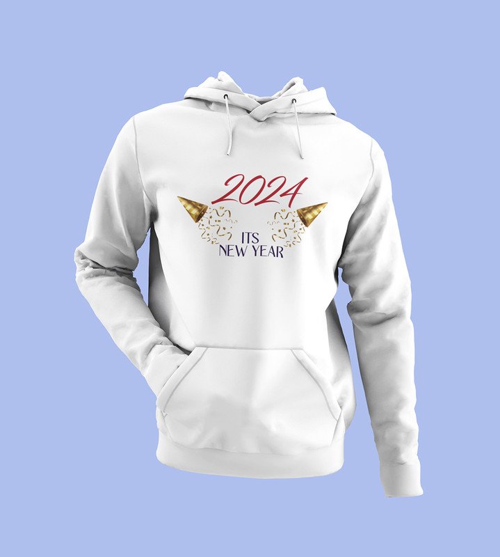 It's A New Year, White Graphic Printed Hoodies For Mens Boys