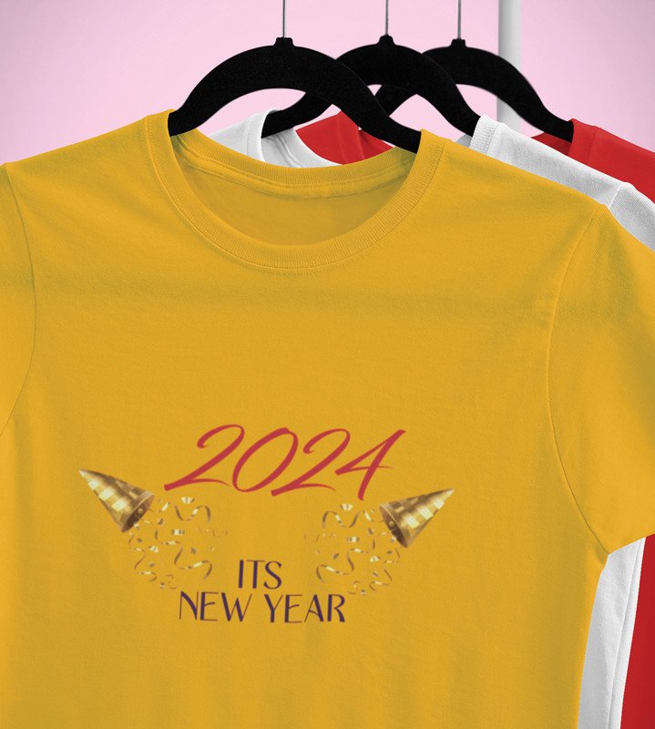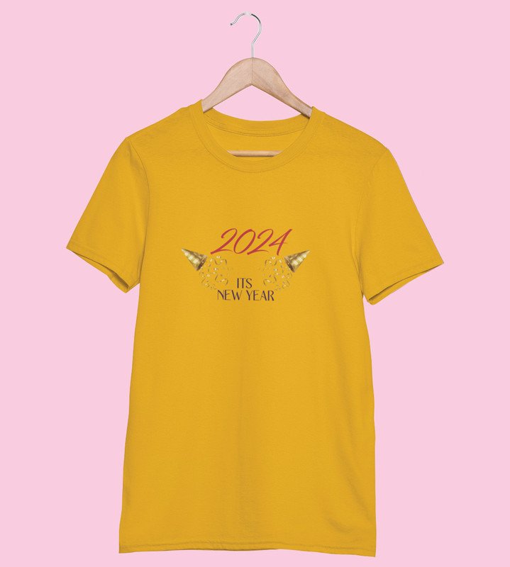 It's A New YearYellow Graphic Printed T-shirt For Mens Boys