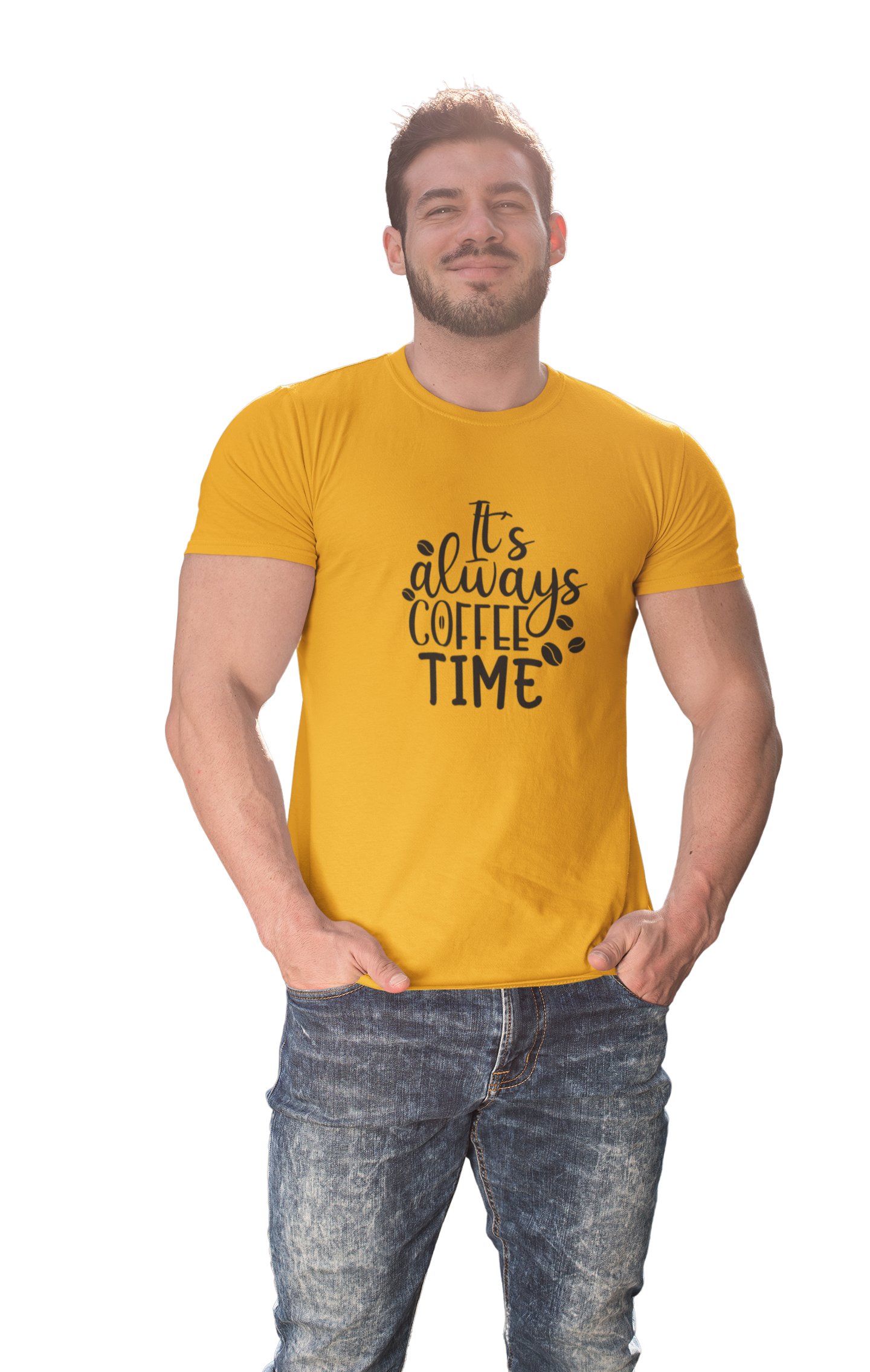 Its always Coffee time - Yellow - printed t shirt - comfortable round neck cotton.