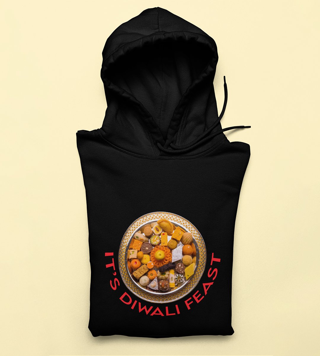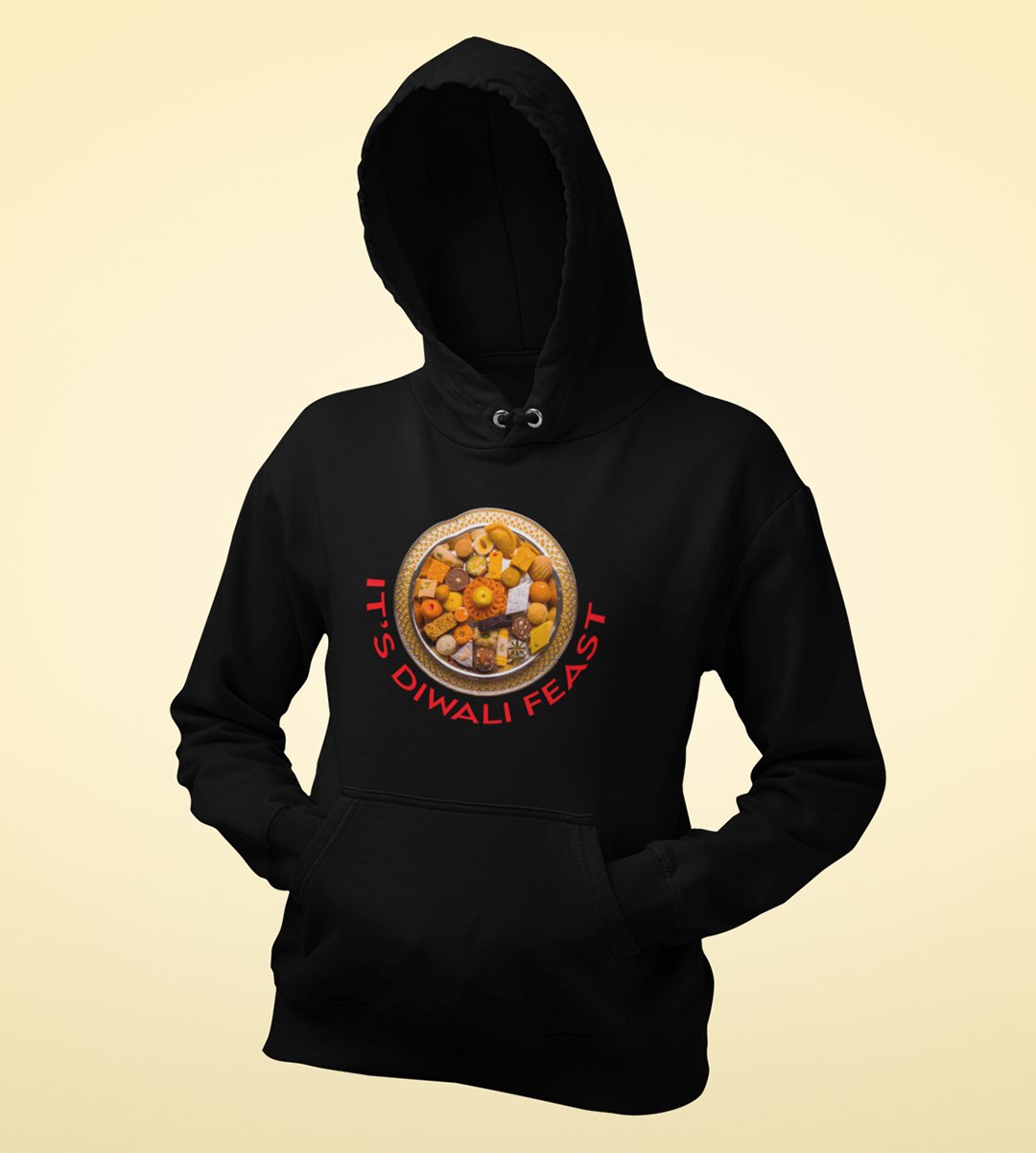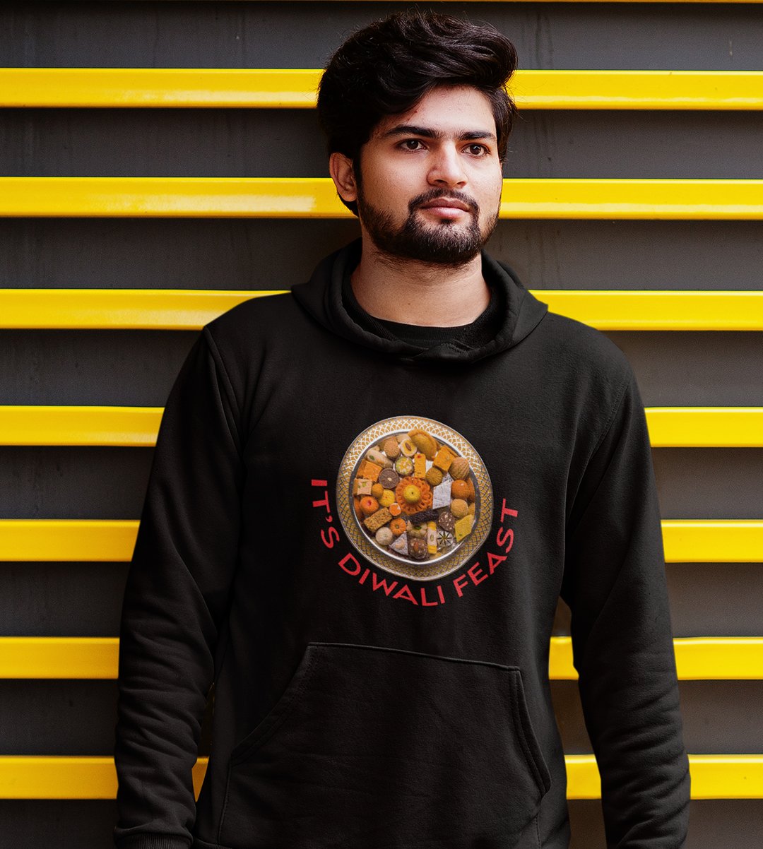 It's diwali feast printed diwali themed black Hoodie specially for diwali festival