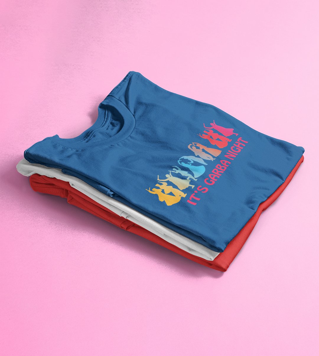 It's garba night printed unisex adults round neck cotton half-sleeve blue tshirt specially for Navratri festival/ Durga puja