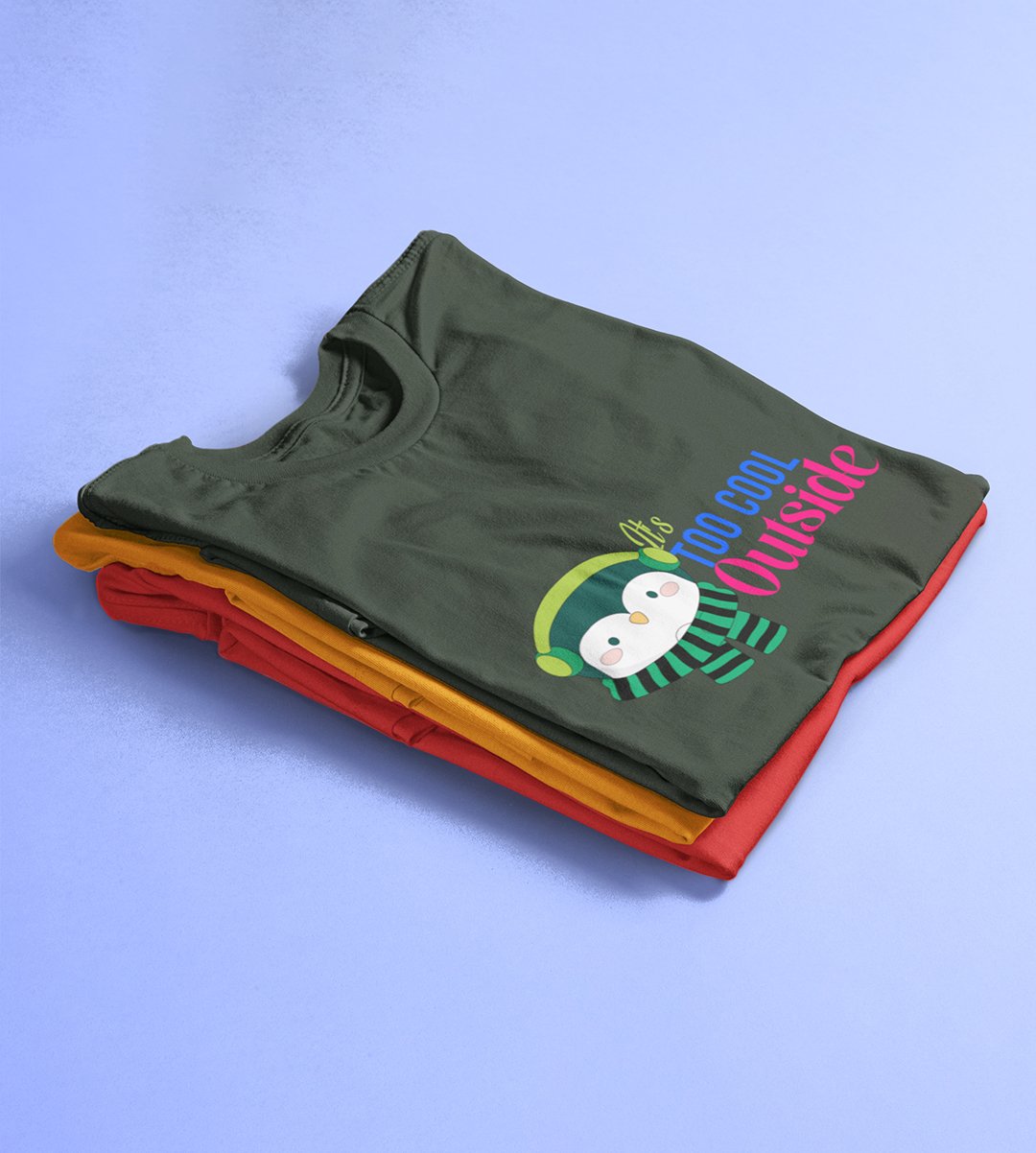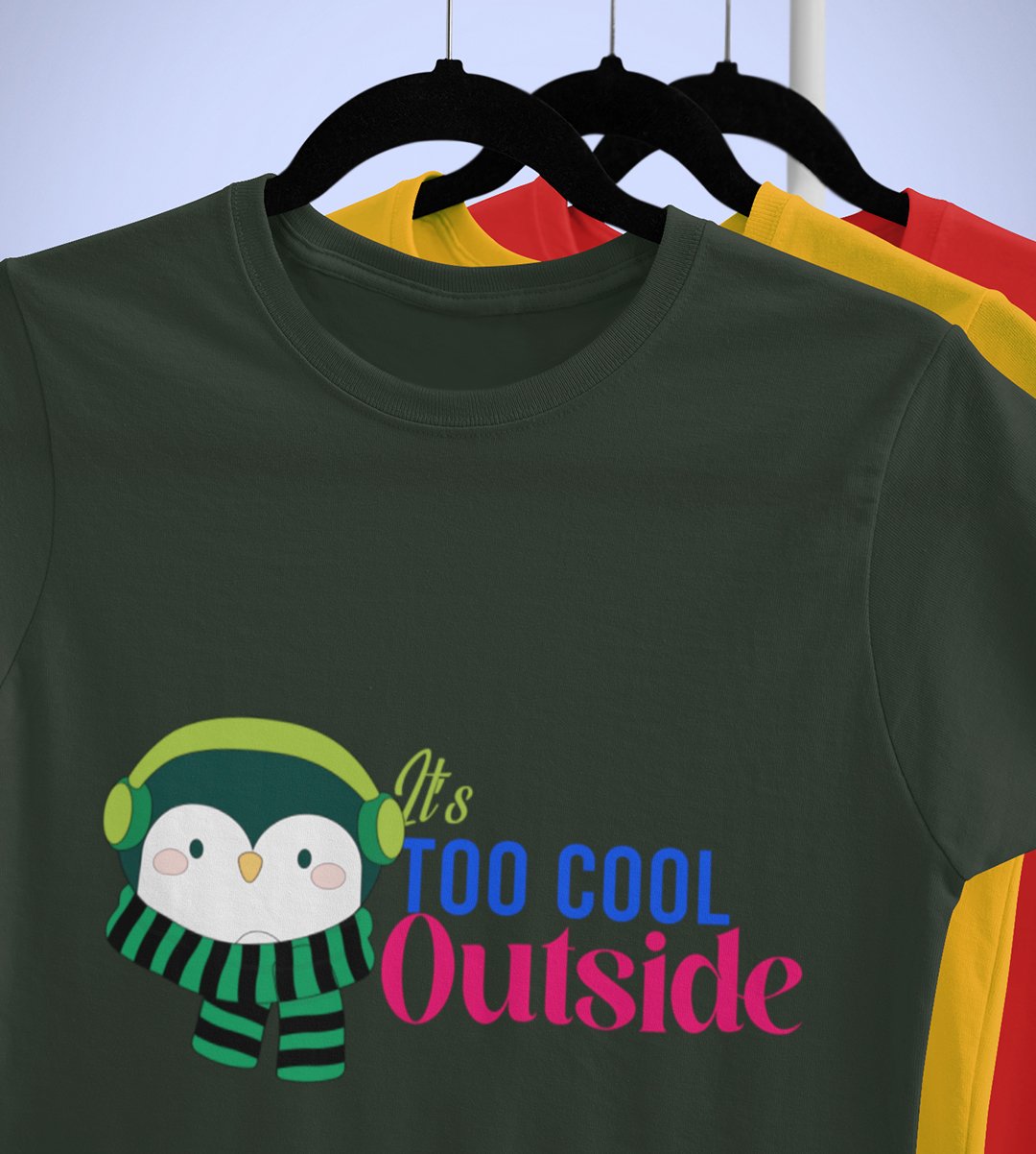 It's Too Cold Outside : Unique Winter Printed T-shirt (Green) Unique Gift For Boys Girls