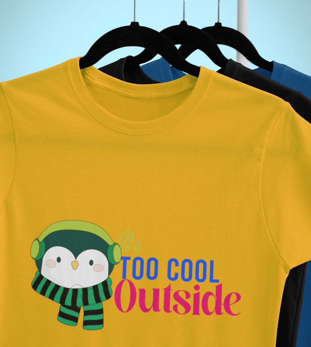 It's Too Cold Outside : Unique Winter Printed T-shirt (Yellow) Unique Gift For Boys Girls