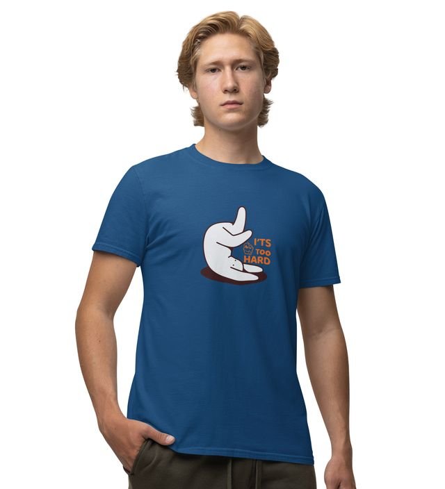 It's Too Hard! Blue Round Neck Cotton Half Sleeved Men T-Shirt with Printed Graphics