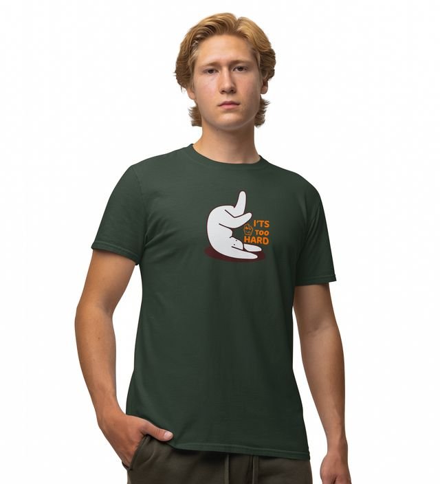 It's Too Hard! Green Round Neck Cotton Half Sleeved Men T-Shirt with Printed Graphics