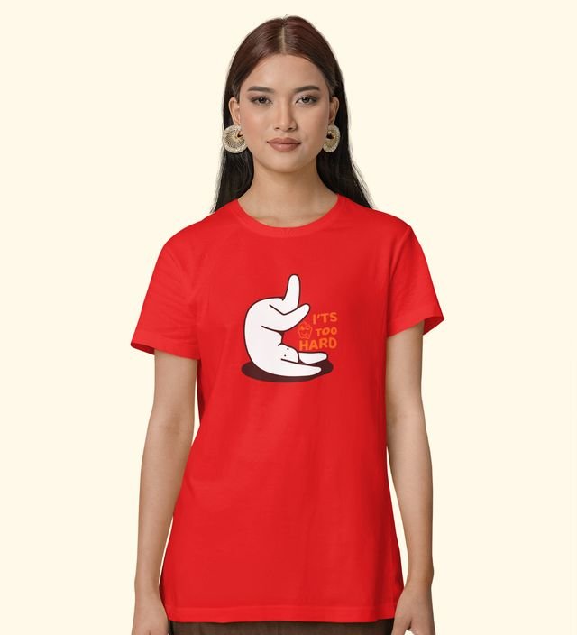 It's Too Hard! Red Round Neck Cotton Half Sleeved Women T-Shirt with Printed Graphics