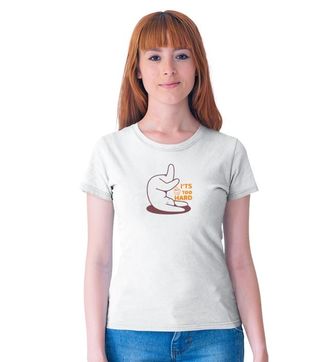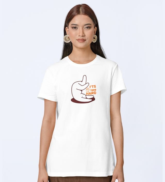 It's Too Hard! White Round Neck Cotton Half Sleeved Women T-Shirt with Printed Graphics