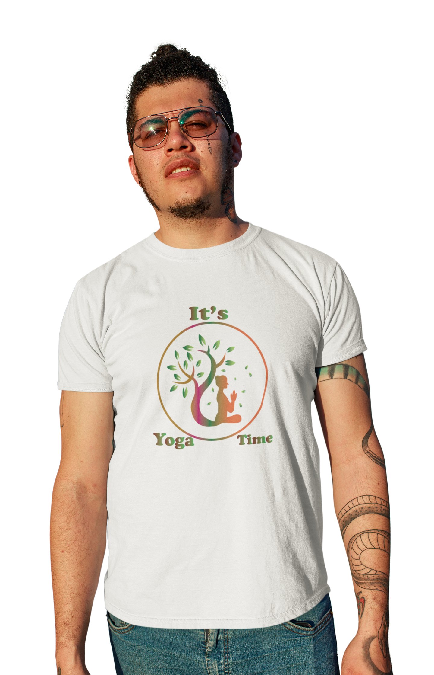 It's Yoga time text - White - Comfortable Yoga T-shirts for Yoga Printed Men's T-shirts White