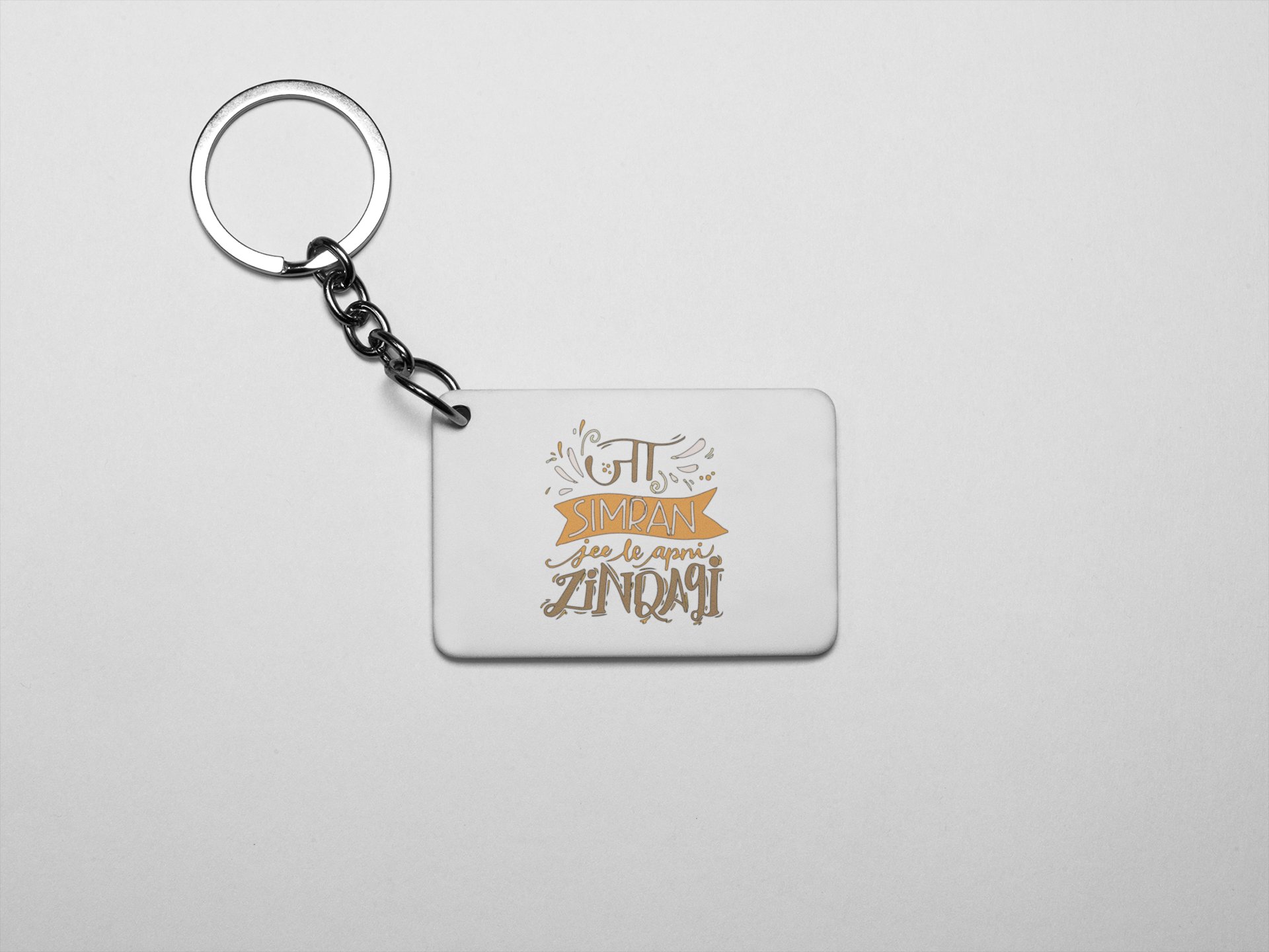 Jaa simran ji le apni zindgi -acryllic printed white keychains/ keyrings for bollywood lover people(Pack Of 2)