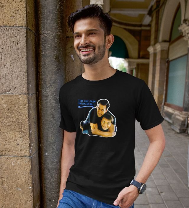 Jaan Bhi Hazir Hai Black Round Neck Cotton Half Sleeved Men T-Shirt with Printed Graphics