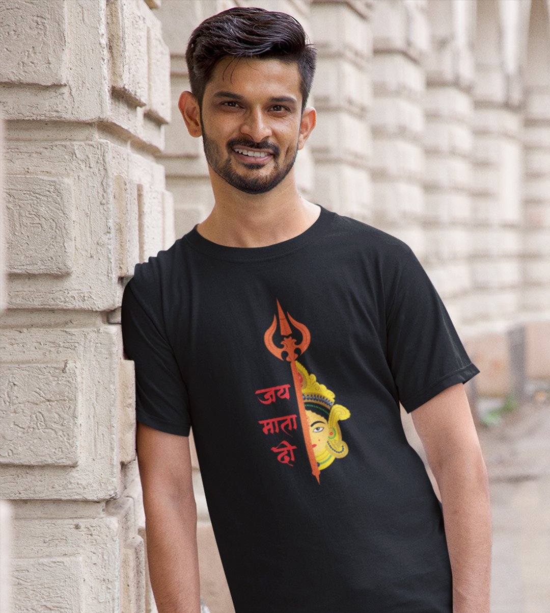 Jai mata di printed unisex adults round neck cotton half-sleeve black tshirt specially for Navratri festival/ Durga puja