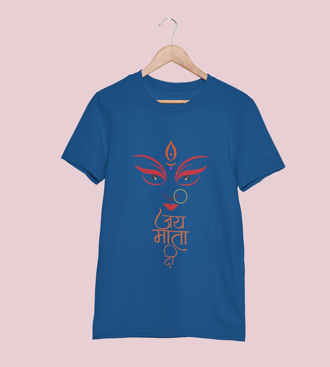 Jai Mata Di printed unisex adults round neck cotton half-sleeve blue tshirt specially for Navratri festival/ Durga puja