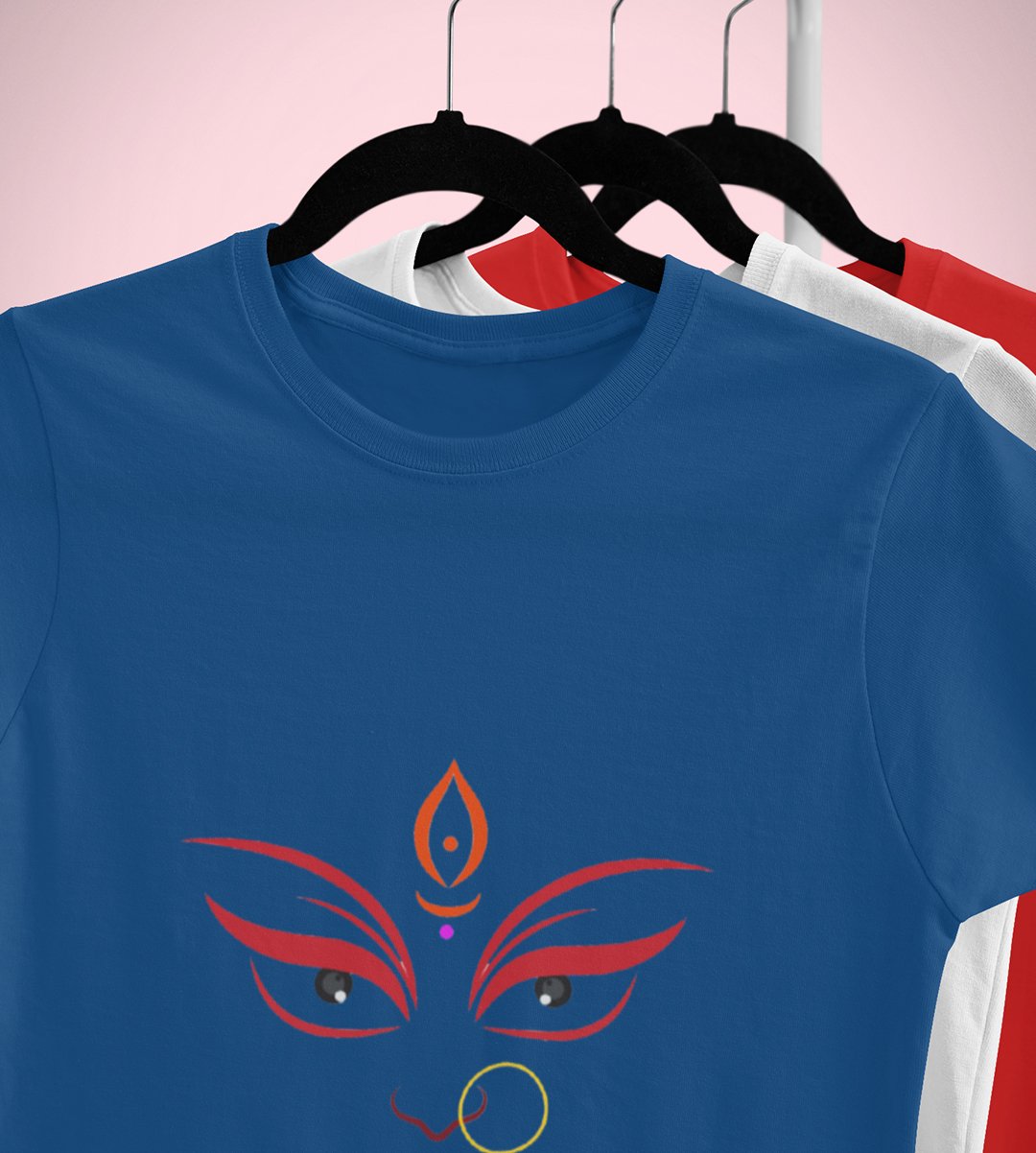 Navratri is a very auspicious festival for hindus. It takes place at the beginning of October and sometimes September. Enjoy the 9 days of festivities with full zeal and make yourself submerged in the love of Maa Durga. Navratri is also known as Durga Puja. And with this Tees, you can shine like a star during this festive season with our navratri themed cotton half sleeved Tshirts. You can pair our t-shirts with trousers and denim of your choice and make it a weekday smart casual or weekend wear. This is durable. This tshirt is smooth and soft which makes you comfortable to wear during all seasons. The printing in it is durable and odourless. It has five sizes, S,M,L,XL,XXL. The Tshirt colour is intact even after repeated washes. It can be kept in your wardrobe and hangers. Please avoid washing mashine to clean this Tee, it may affect the print. Hand wash only. We have brought you many navratri related designs printed on our different colour Tshirts to choose from. Grab it now.