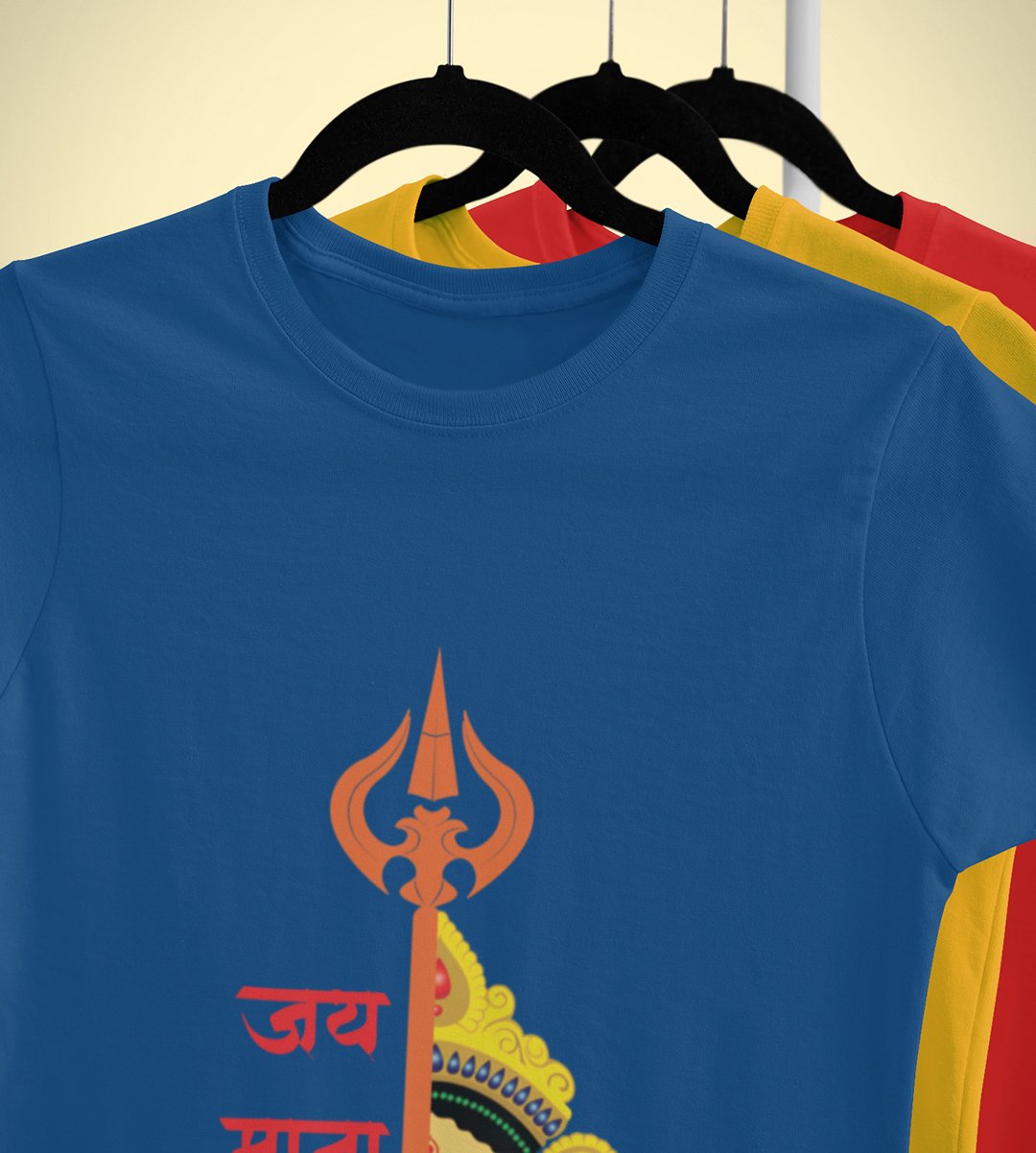 Jai mata di printed unisex adults round neck cotton half-sleeve blue tshirt specially for Navratri festival/ Durga puja