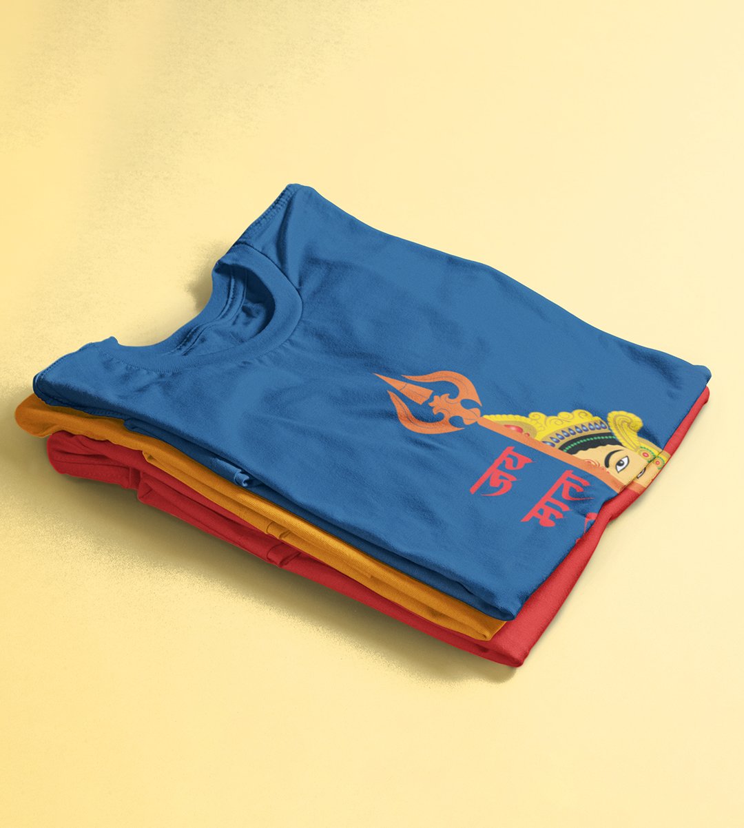 Navratri is a very auspicious festival for hindus. It takes place at the beginning of October and sometimes September. Enjoy the 9 days of festivities with full zeal and make yourself submerged in the love of Maa Durga. Navratri is also known as Durga Puja. And with this Tees, you can shine like a star during this festive season with our navratri themed cotton half sleeved Tshirts. You can pair our t-shirts with trousers and denim of your choice and make it a weekday smart casual or weekend wear. This is durable. This tshirt is smooth and soft which makes you comfortable to wear during all seasons. The printing in it is durable and odourless. It has five sizes, S,M,L,XL,XXL. The Tshirt colour is intact even after repeated washes. It can be kept in your wardrobe and hangers. Please avoid washing mashine to clean this Tee, it may affect the print. Hand wash only. We have brought you many navratri related designs printed on our different colour Tshirts to choose from. Grab it now.