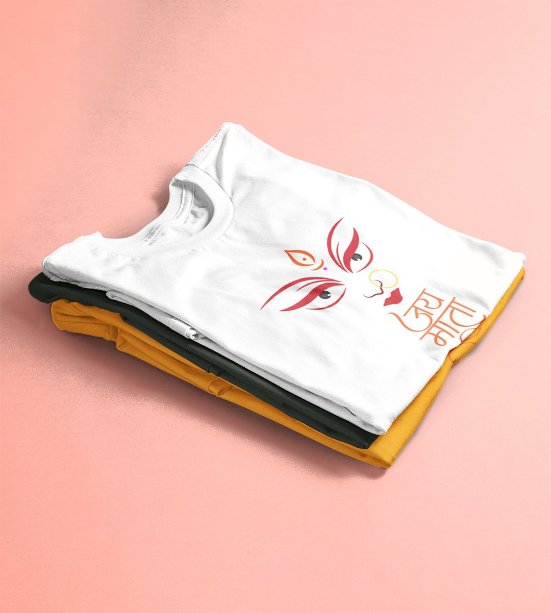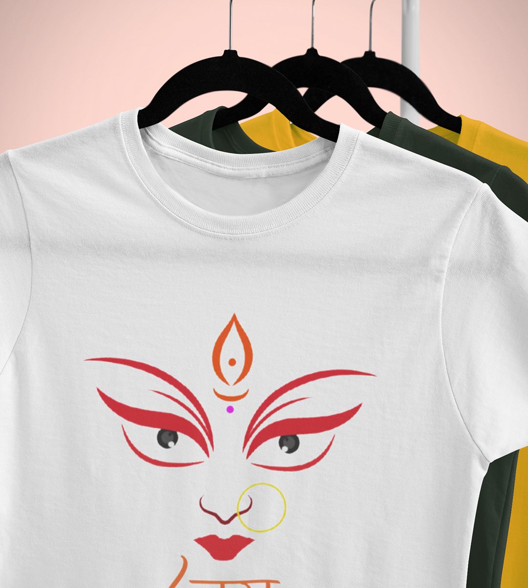 Navratri is a very auspicious festival for hindus. It takes place at the beginning of October and sometimes September. Enjoy the 9 days of festivities with full zeal and make yourself submerged in the love of Maa Durga. Navratri is also known as Durga Puja. And with this Tees, you can shine like a star during this festive season with our navratri themed cotton half sleeved Tshirts. You can pair our t-shirts with trousers and denim of your choice and make it a weekday smart casual or weekend wear. This is durable. This tshirt is smooth and soft which makes you comfortable to wear during all seasons. The printing in it is durable and odourless. It has five sizes, S,M,L,XL,XXL. The Tshirt colour is intact even after repeated washes. It can be kept in your wardrobe and hangers. Please avoid washing mashine to clean this Tee, it may affect the print. Hand wash only. We have brought you many navratri related designs printed on our different colour Tshirts to choose from. Grab it now.