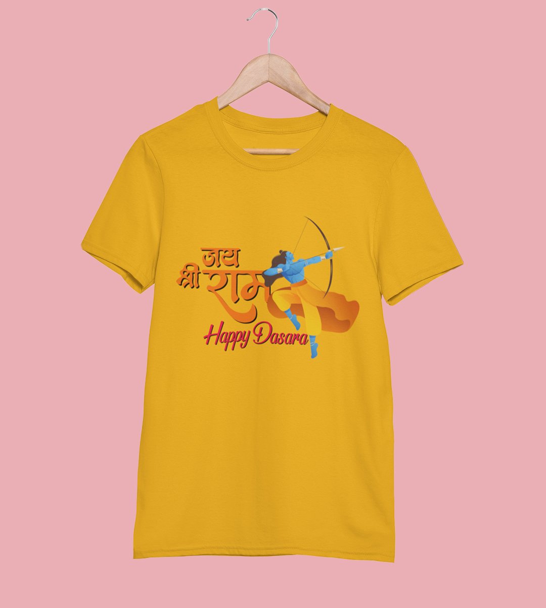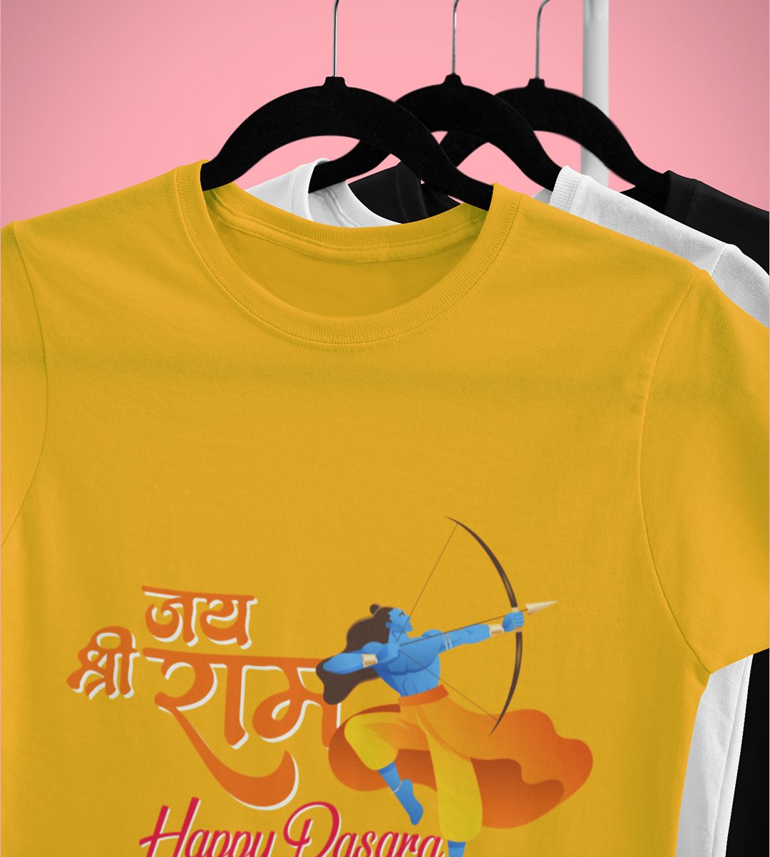Jai Shree Ram (Lord Ram animation) printed unisex adults round neck cotton half-sleeve yellow tshirt specially for Navratri festival/ Durga puja