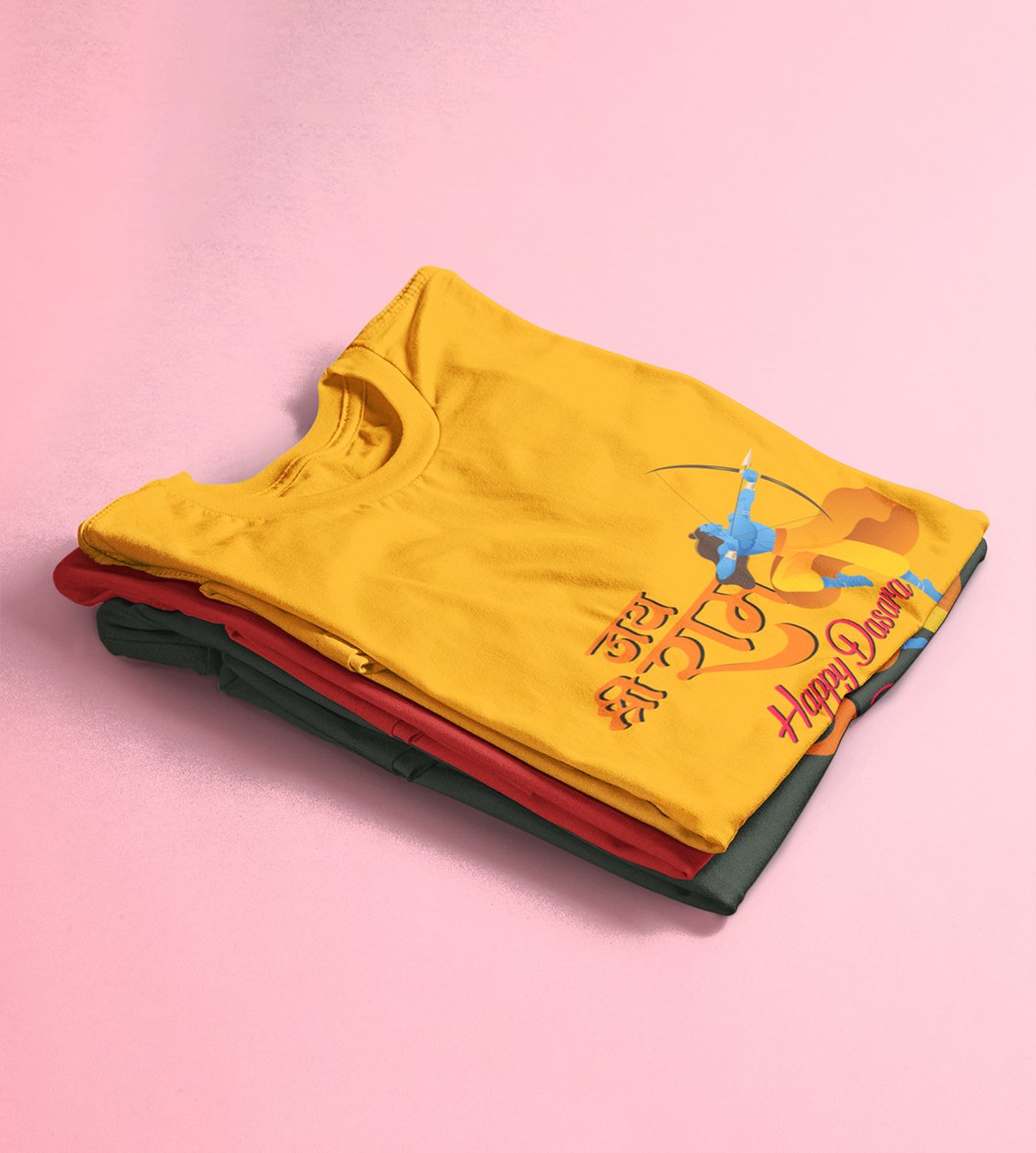 Navratri is a very auspicious festival for hindus. It takes place at the beginning of October and sometimes September. Enjoy the 9 days of festivities with full zeal and make yourself submerged in the love of Maa Durga. Navratri is also known as Durga Puja. And with this Tees, you can shine like a star during this festive season with our navratri themed cotton half sleeved Tshirts. You can pair our t-shirts with trousers and denim of your choice and make it a weekday smart casual or weekend wear. This is durable. This tshirt is smooth and soft which makes you comfortable to wear during all seasons. The printing in it is durable and odourless. It has five sizes, S,M,L,XL,XXL. The Tshirt colour is intact even after repeated washes. It can be kept in your wardrobe and hangers. Please avoid washing mashine to clean this Tee, it may affect the print. Hand wash only. We have brought you many navratri related designs printed on our different colour Tshirts to choose from. Grab it now.