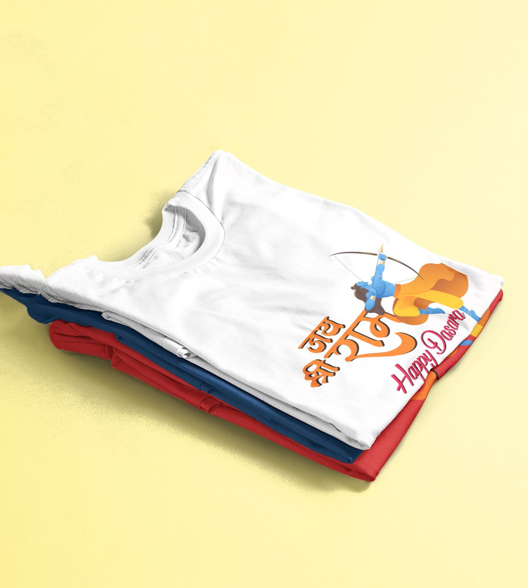 Jai shree ram printed unisex adults round neck cotton half-sleeve white tshirt specially for Navratri festival/ Durga puja