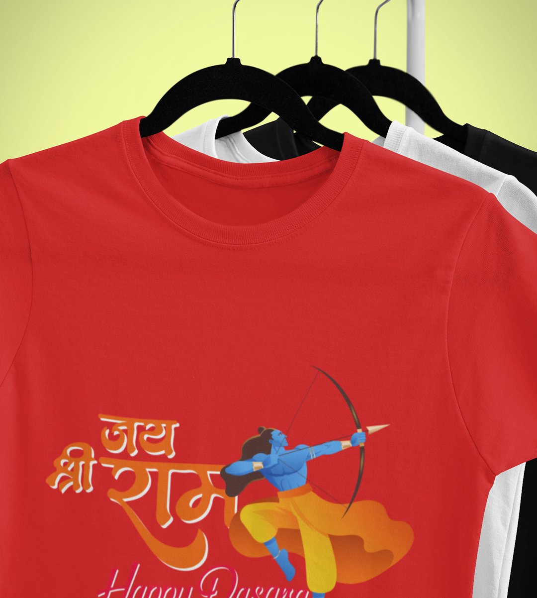 Jai Shree Ram printed unisex adults round neck cotton half-sleeve red tshirt specially for Navratri festival/ Durga puja