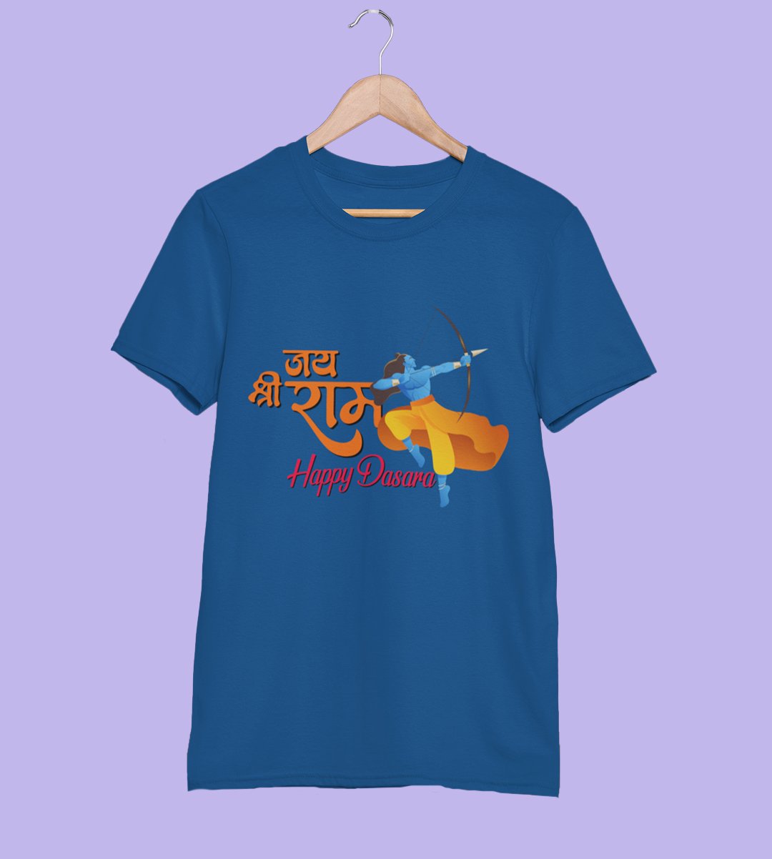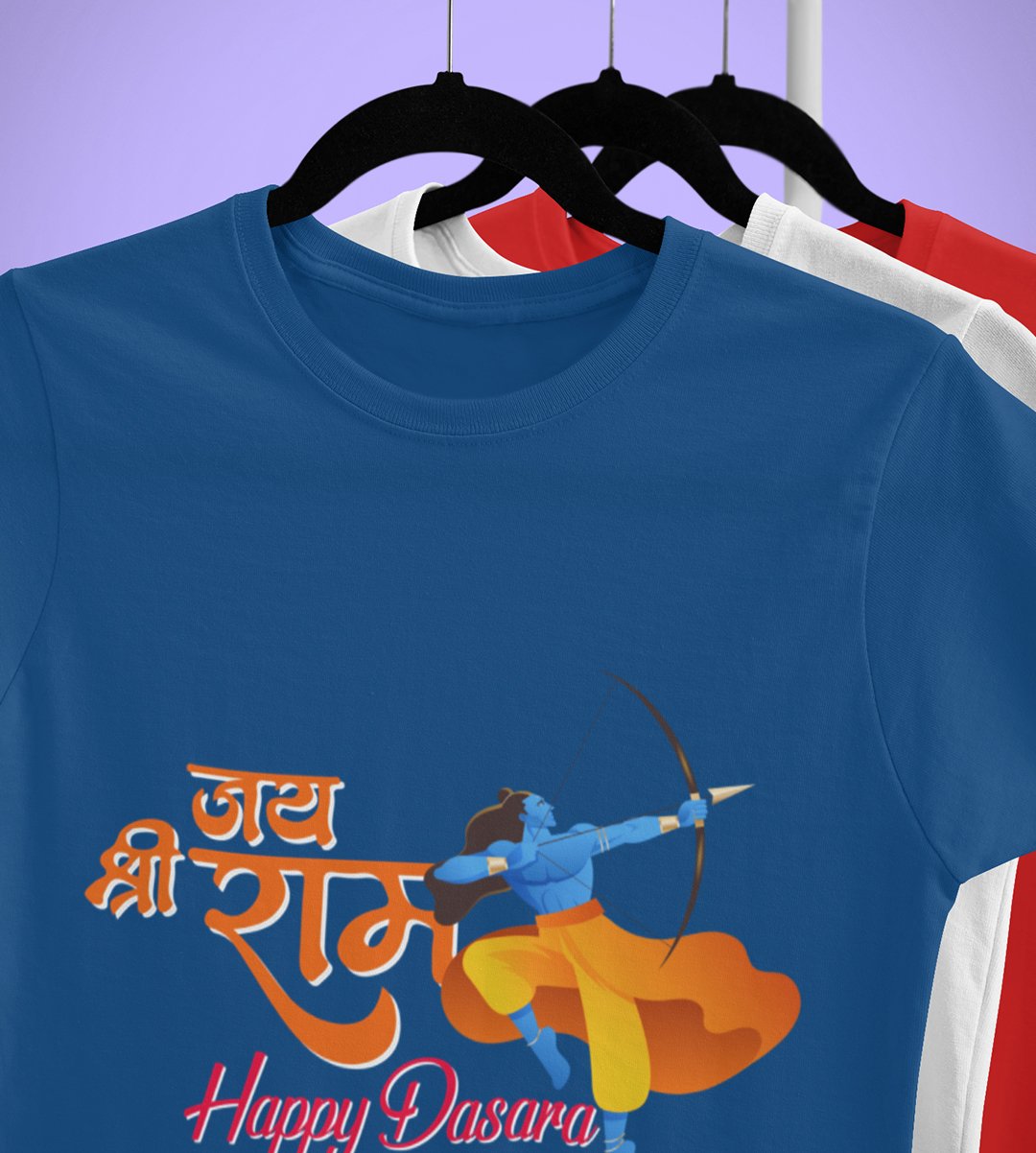 Jai Shree Ram (Yellow) printed unisex adults round neck cotton half-sleeve blue tshirt specially for Navratri festival/ Durga puja