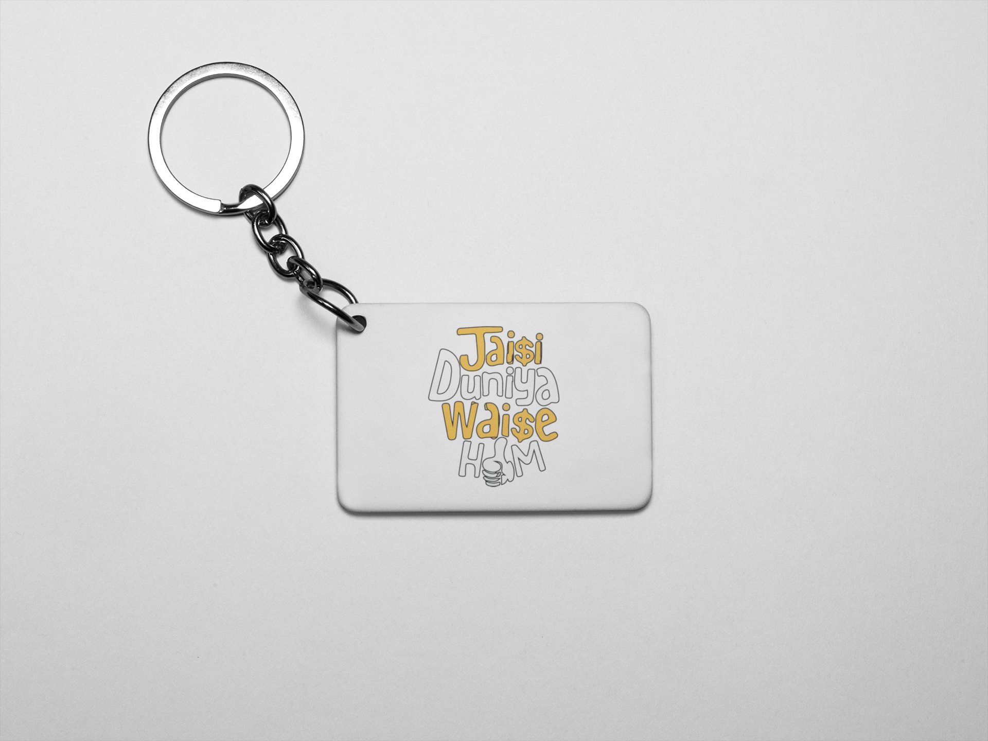 Jaisi Duniya Waise Hum - acryllic printed white keychains/ keyrings for bollywood lover people(Pack Of 2)