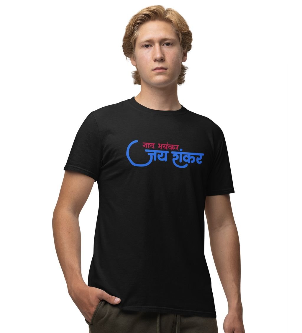 Jay Shankar Black Round Neck Cotton Half Sleeved Men T Shirt with Printed Graphics