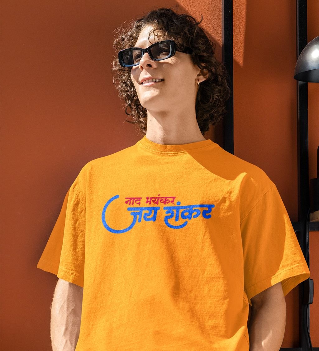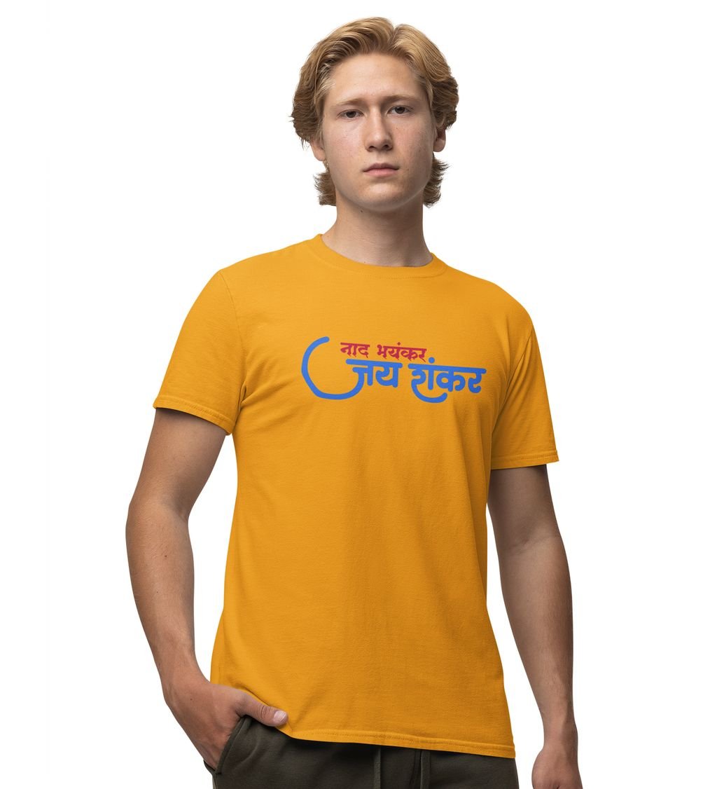 Jay Shankar Yellow Round Neck Cotton Half Sleeved Men T Shirt with Printed Graphics